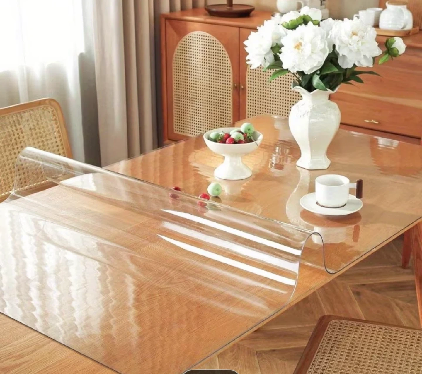 Selling a clear table protector cover! It measures 42 inches by 80 inches (107cm x 203cm). Protect your table from scratches and spills with this handy cover