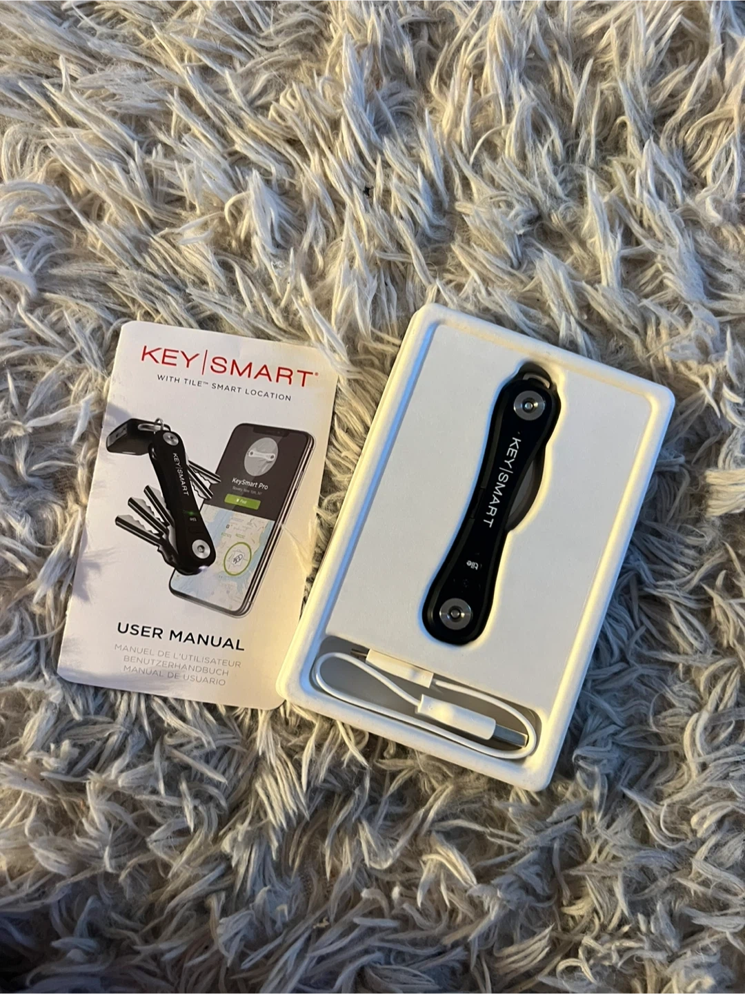 The KeySmart Pro helps you never lose your keys! Locate your missing keys on a map with the free Tile app. You can even use the KeySmart Pro to make your lost phone ring, even when it's silent! The box and user manual are included, as well as a rechargeable charge cable.
