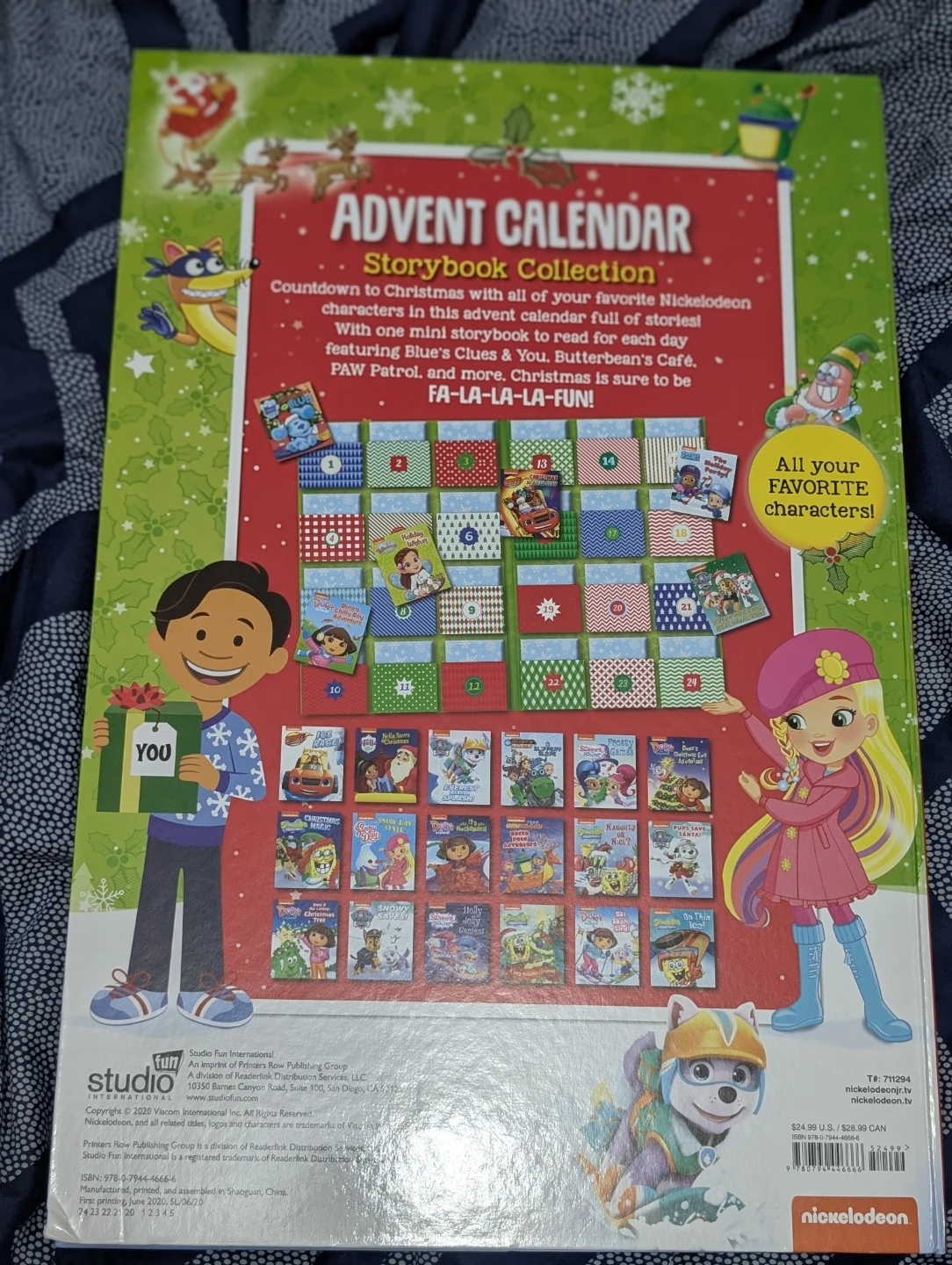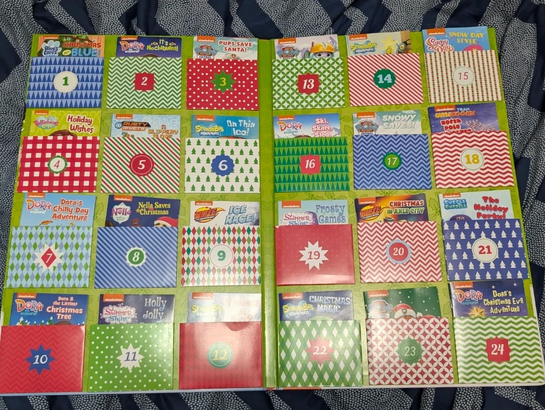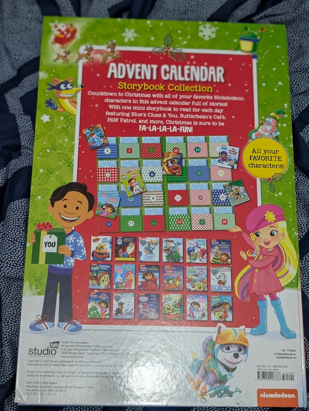 Get ready for the holidays with this fun Nickelodeon Advent Calendar Storybook Collection! It's a festive countdown with all your favourite characters. This advent calendar is full of stories, with one mini storybook to reveal each day featuring Blue's Clues & You, Butterbean's Café, Paw Patrol, and more