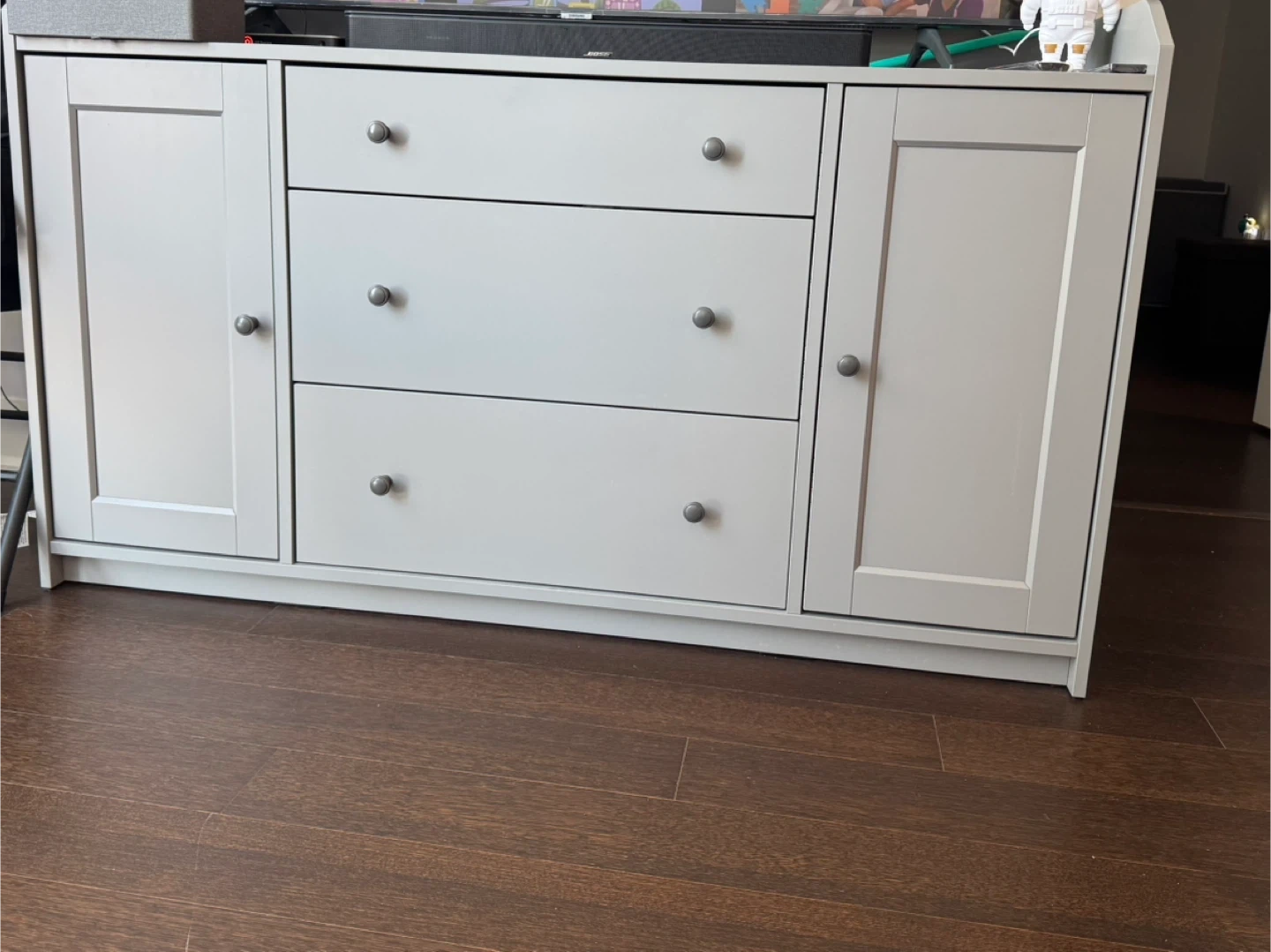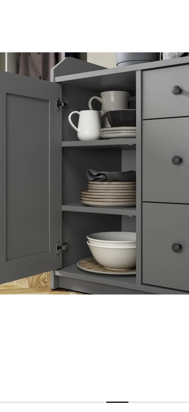Selling a grey IKEA Hauga sideboard. It's in great shape and offers lots of storage with drawers and cabinets! Perfect for a dining room or living room.