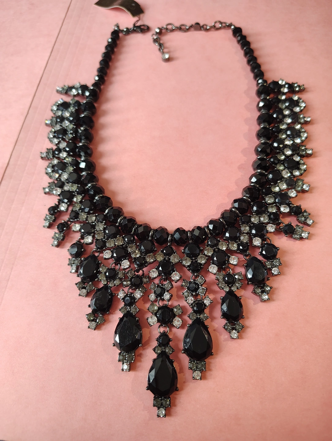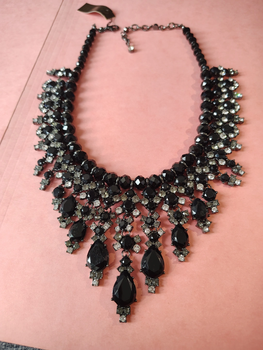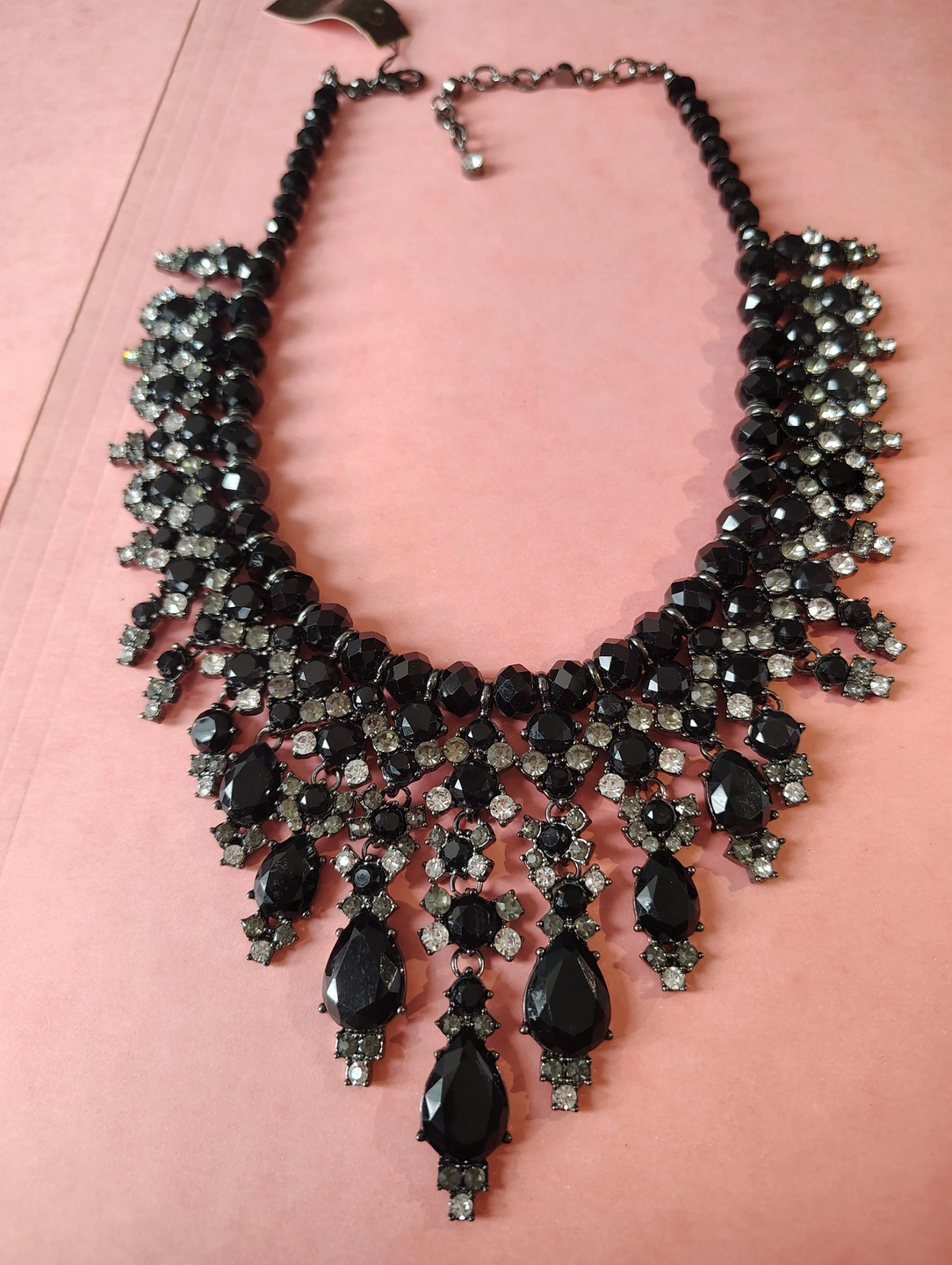 ✨Gunmetal Tone Black Smoke Clear Crystal Statement Necklace✨