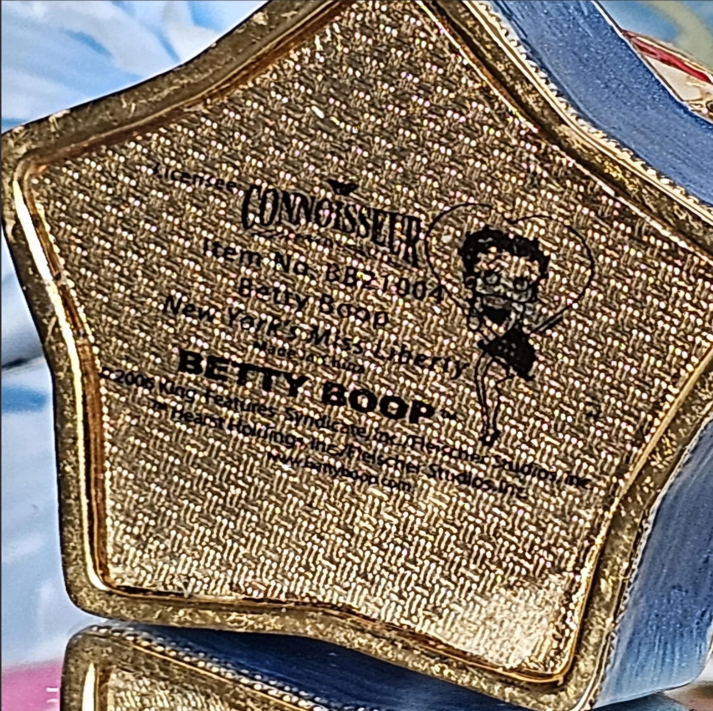 One (1) 2006 Licensed Betty Boop "New York's Miss Liberty" handpainted Metal and Enamel footed ring Box Jewelry Box Dresser Box Vanity Box Mint Condition.