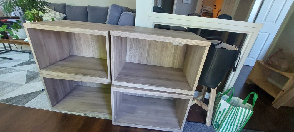 I have 4 assembled Besta shelf units, $40 each that were used in our office space but are no longer needed. Here is the link to the item on the website: