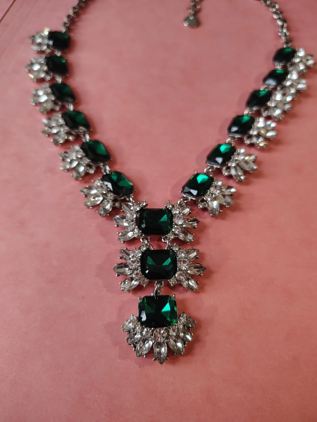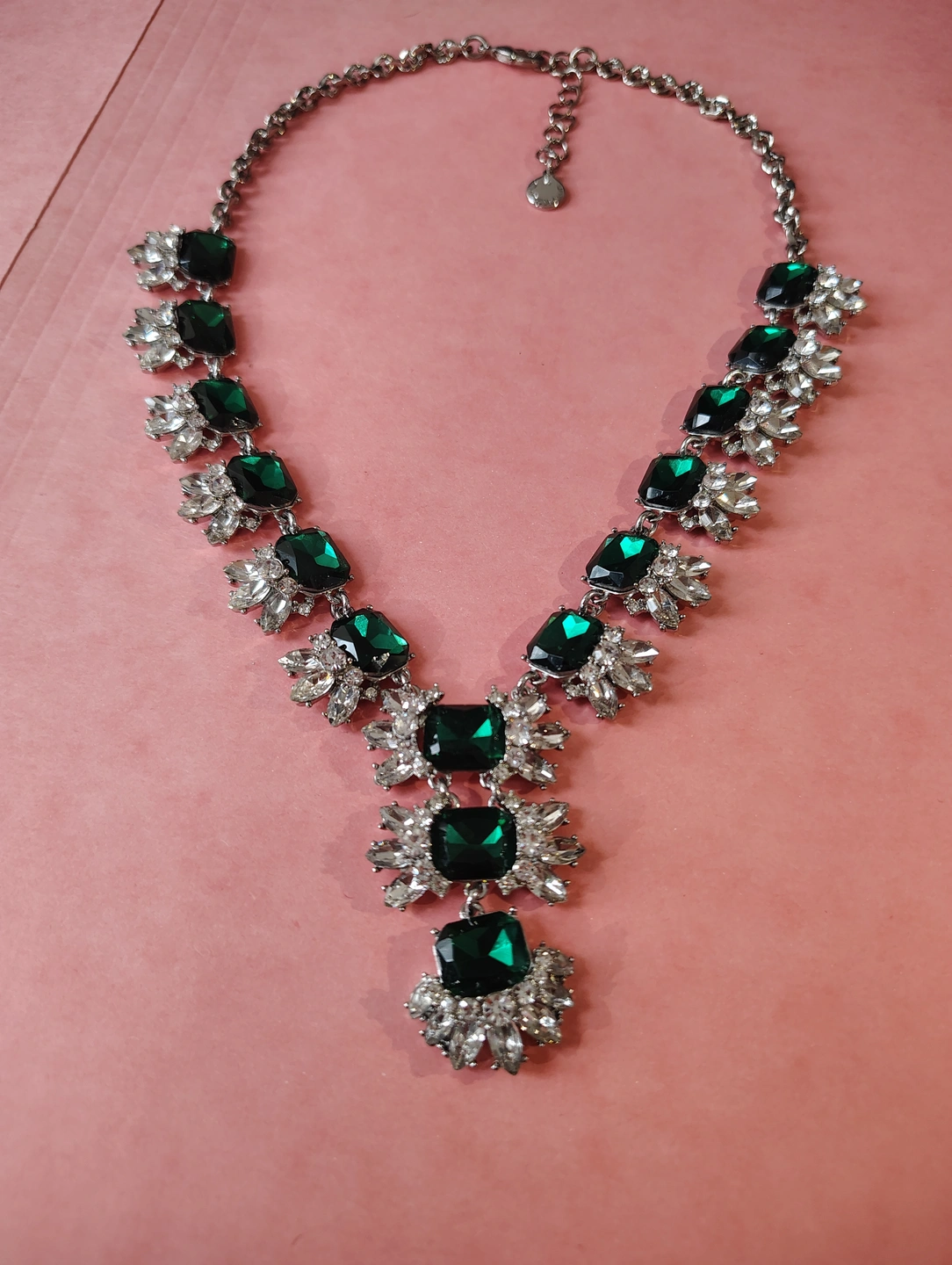 ✨Silver Tone Clear & Green Crystal Necklace✨