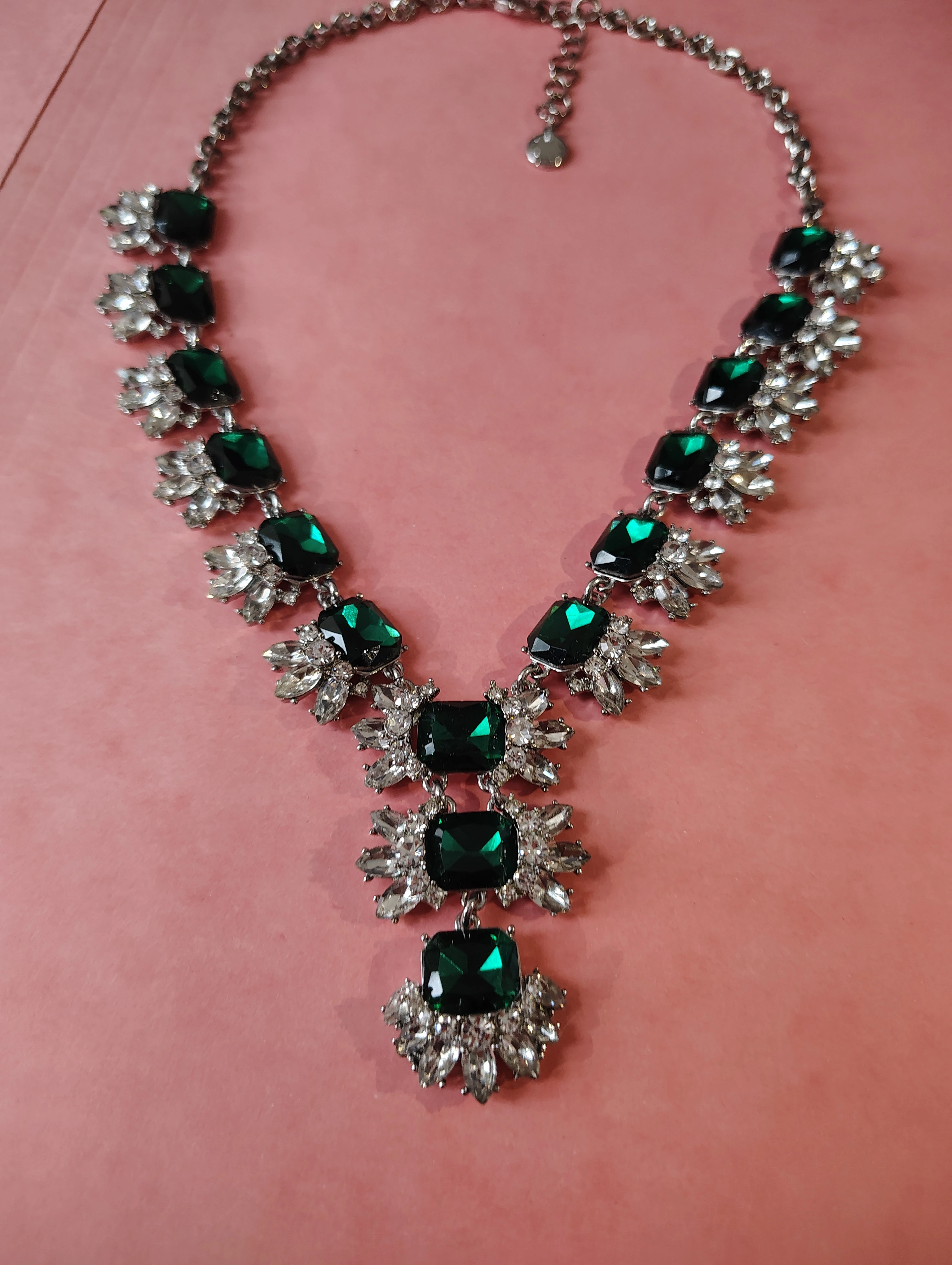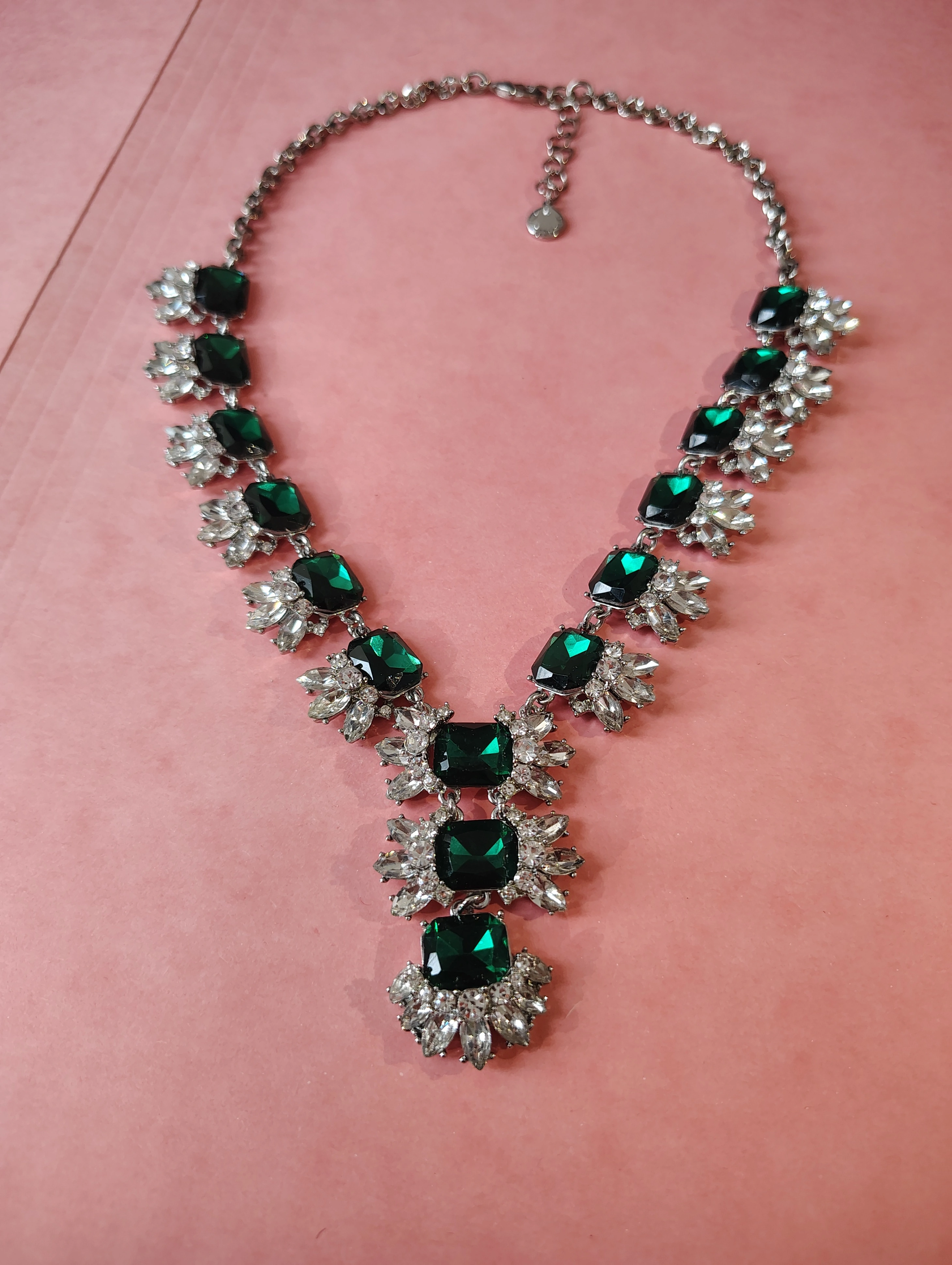 ✨Silver Tone Clear & Green Crystal Necklace✨