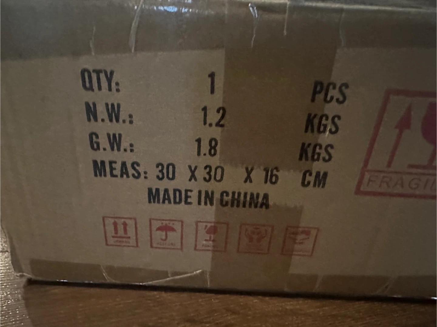 Selling a brushed gold wall lamp, model number FD3118N1GB-2. It's made of steel and glass and uses an E26 bulb base with a max wattage of 60 watts. This lamp is for indoor use only and comes in its original box. Dimensions are 30 x 30 x 16 cm