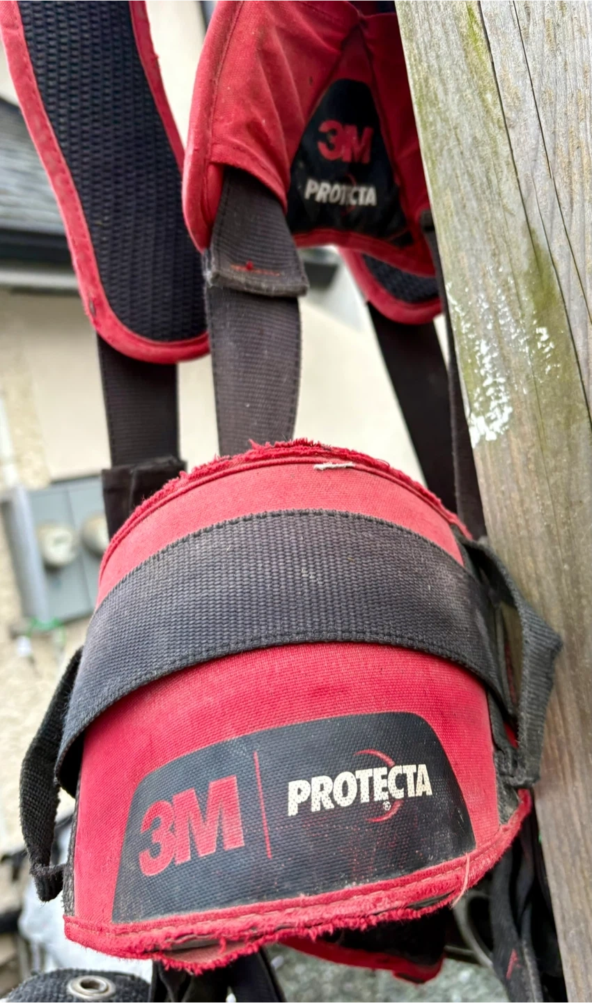 Selling a used 3M Protecta safety harness in red and black. It's in good condition and ready for use. Perfect for anyone needing a reliable safety harness for work or other activities! Unsure of size, looks like a large.