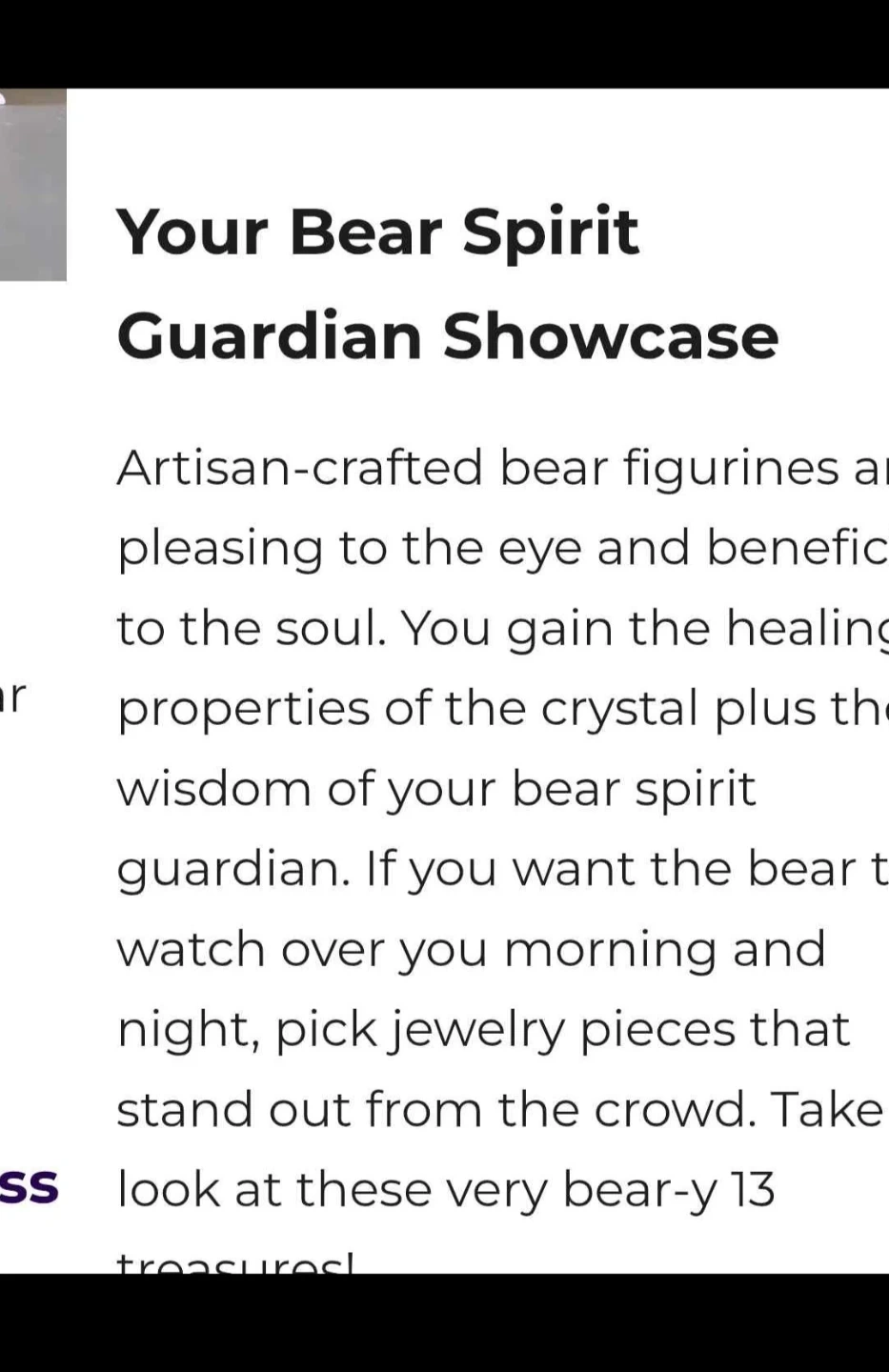 This is an artisan-crafted bear figurine. It's a crystal bear figurine that symbolizes your sacred spirit guardian. It leads you along the path of nature and into enlightenment through Oneness