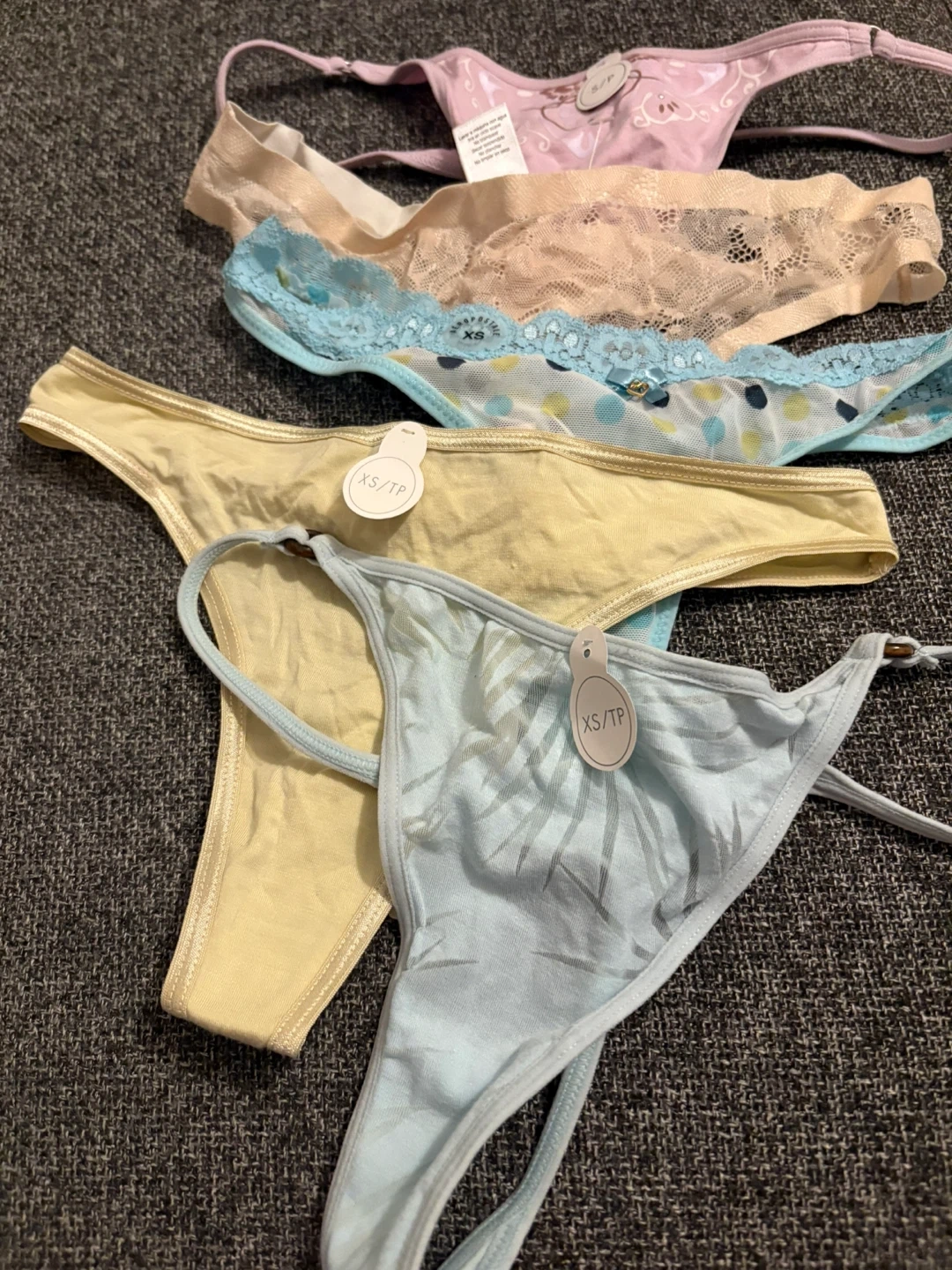 Selling a collection of thong panties in size XS/TP. One is size small but similar size to the others. All are brand new and never worn. There are 5 - the whole lunch for $5 ($1 each)