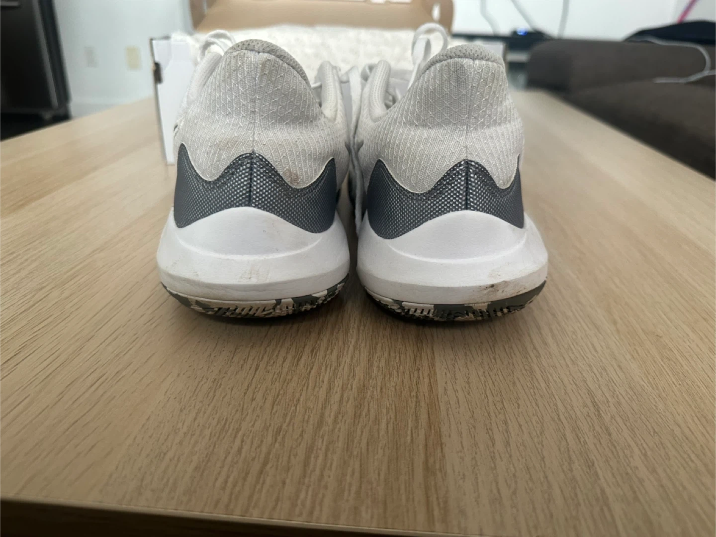 Selling a pair of Nike Air Force 1 sneakers in white. They come with the original box. Please take a look at the pictures for the condition!