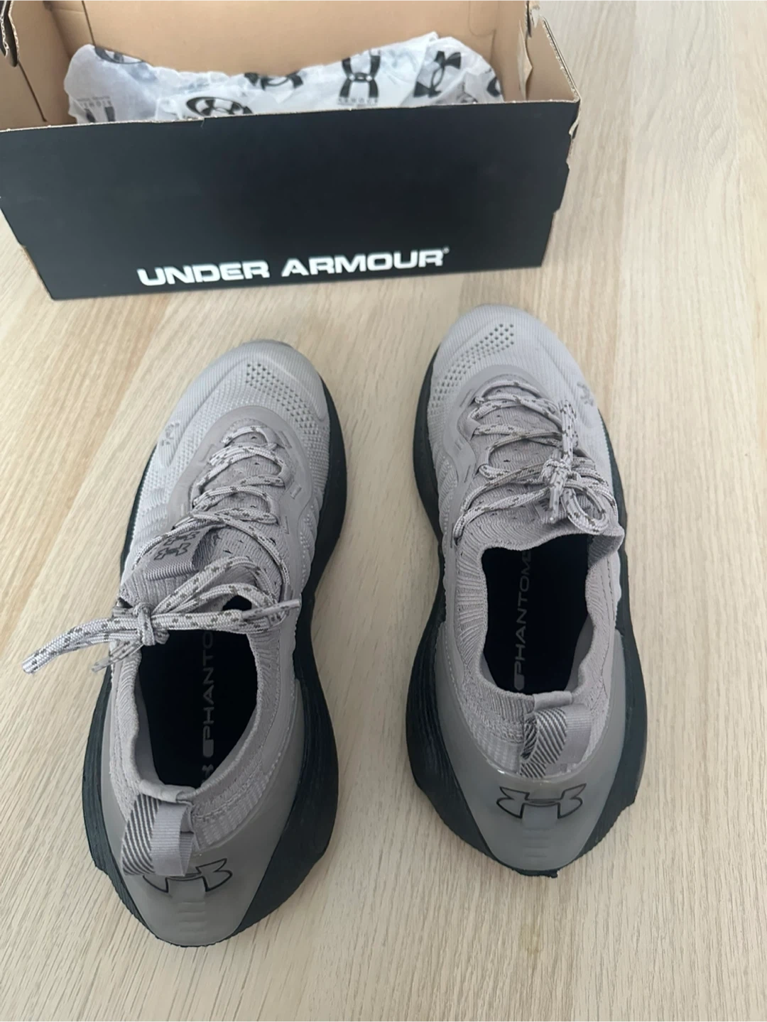 Selling a pair of Under Armour Phantom 3 running shoes in grey! They come with the original box. These are great for running or everyday wear, super comfy!