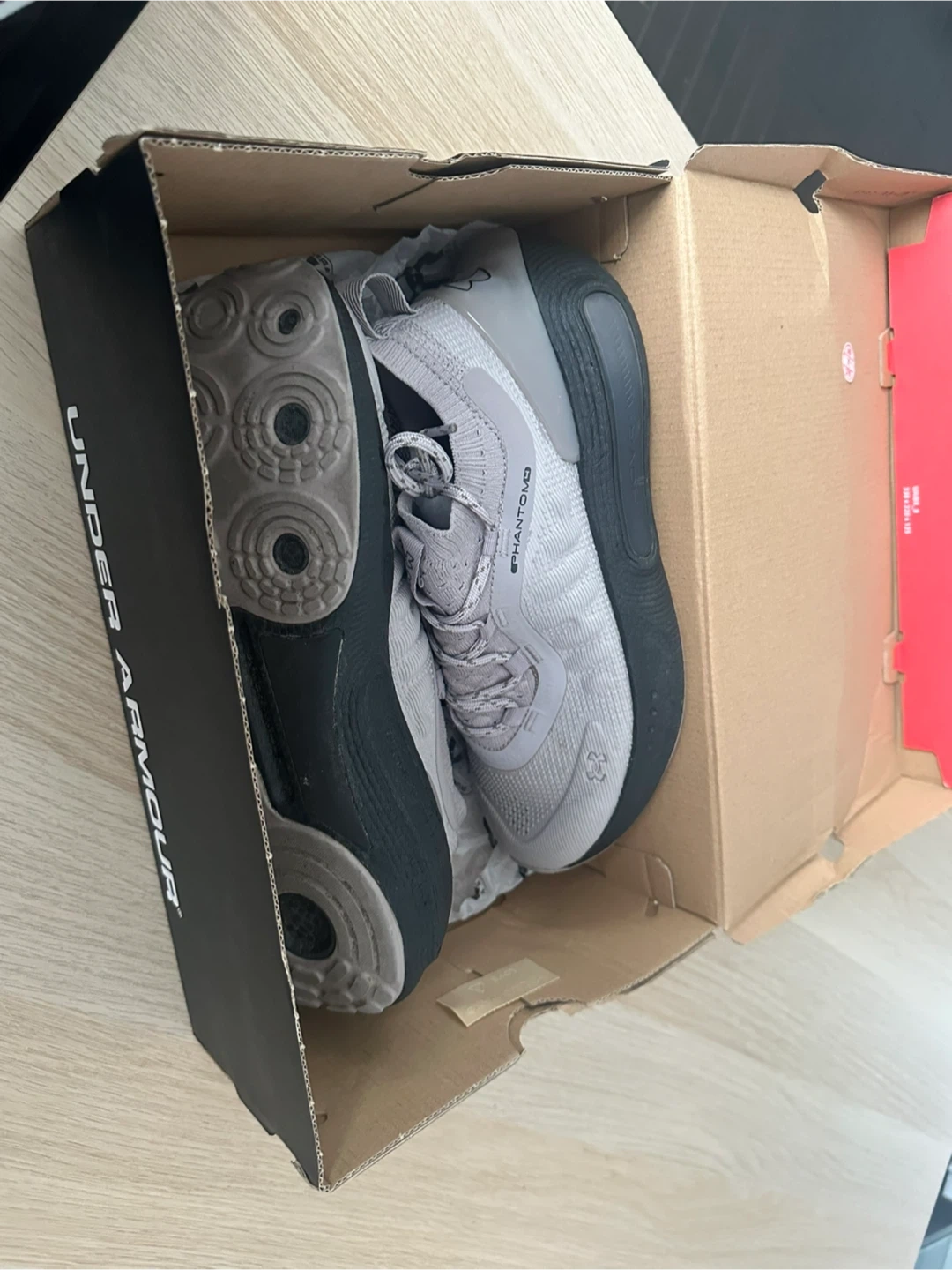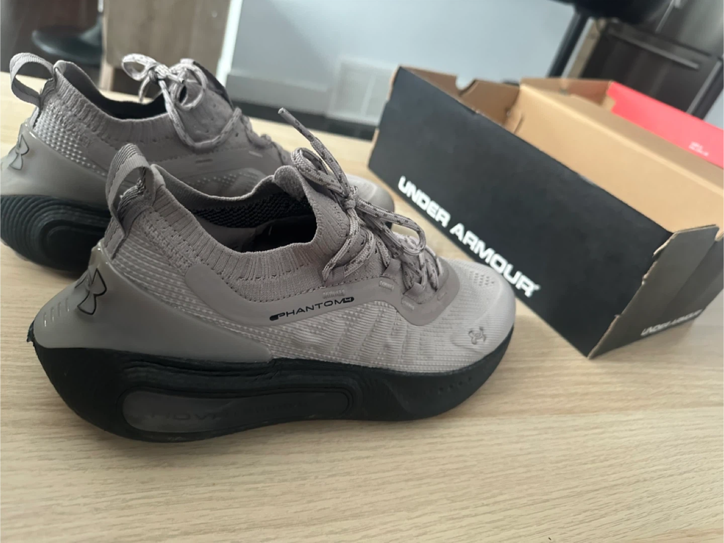 Selling a pair of Under Armour Phantom 3 running shoes in grey! They come with the original box. These are great for running or everyday wear, super comfy!