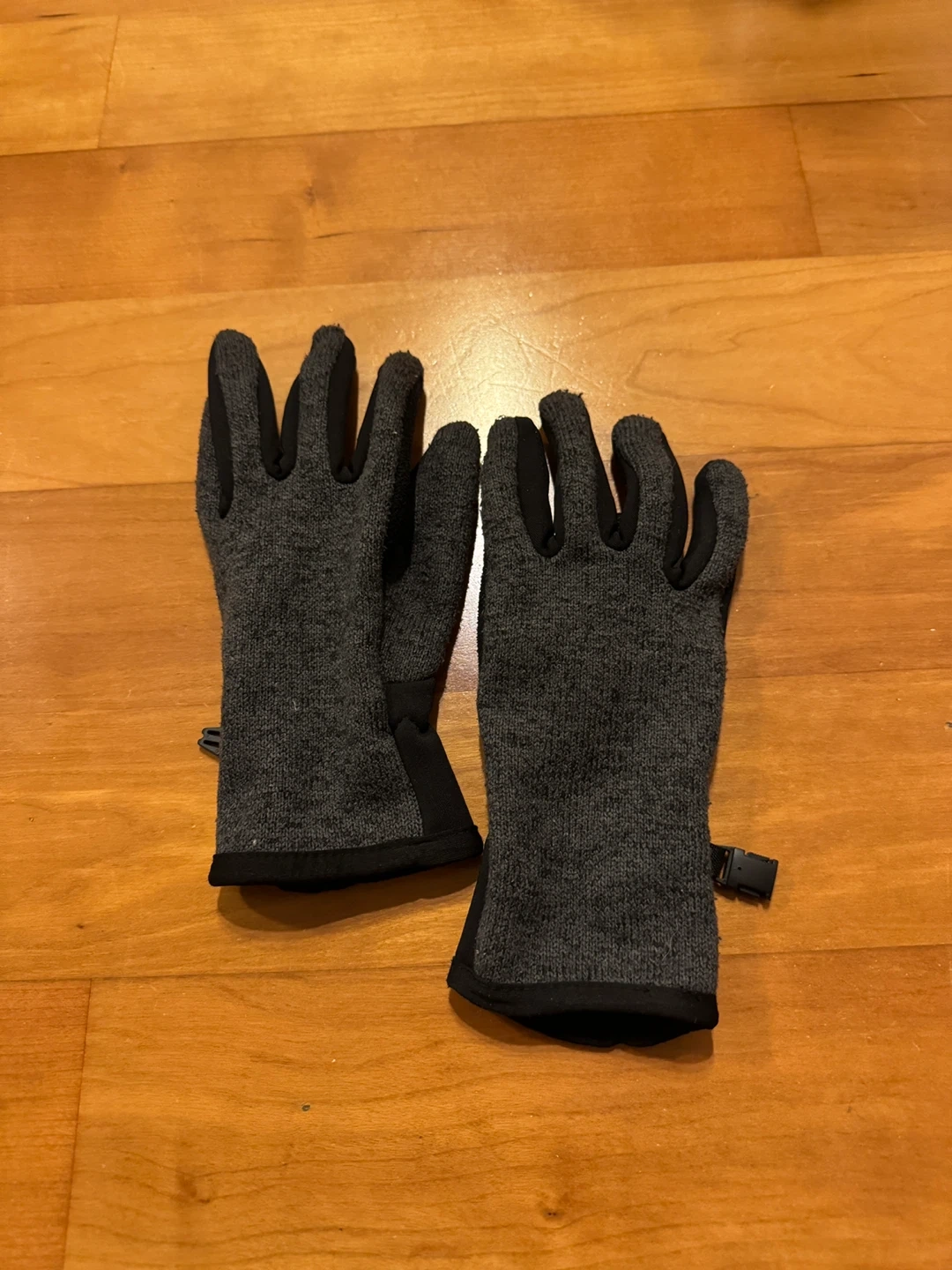 Selling a pair of gloves in great condition! They are grey and black in colour and appear to be a wool blend with some synthetic materials. Perfect for keeping your hands warm on chilly days!