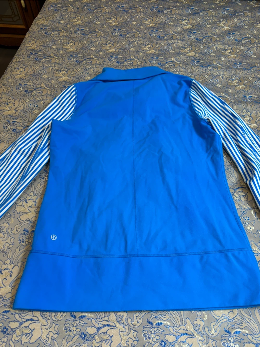 Lululemon Athletica jacket in a vibrant blue! It features stylish striped sleeves.
