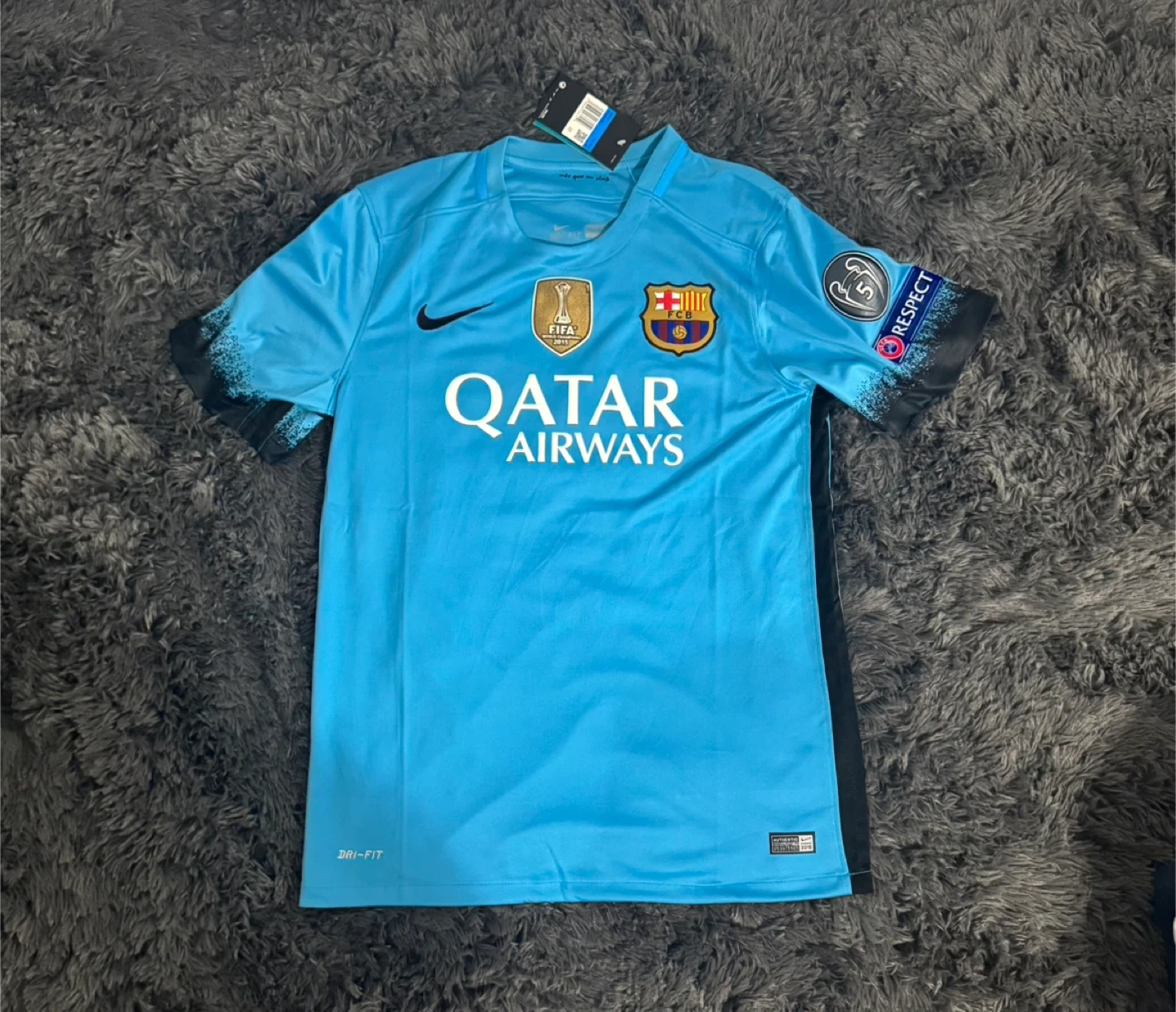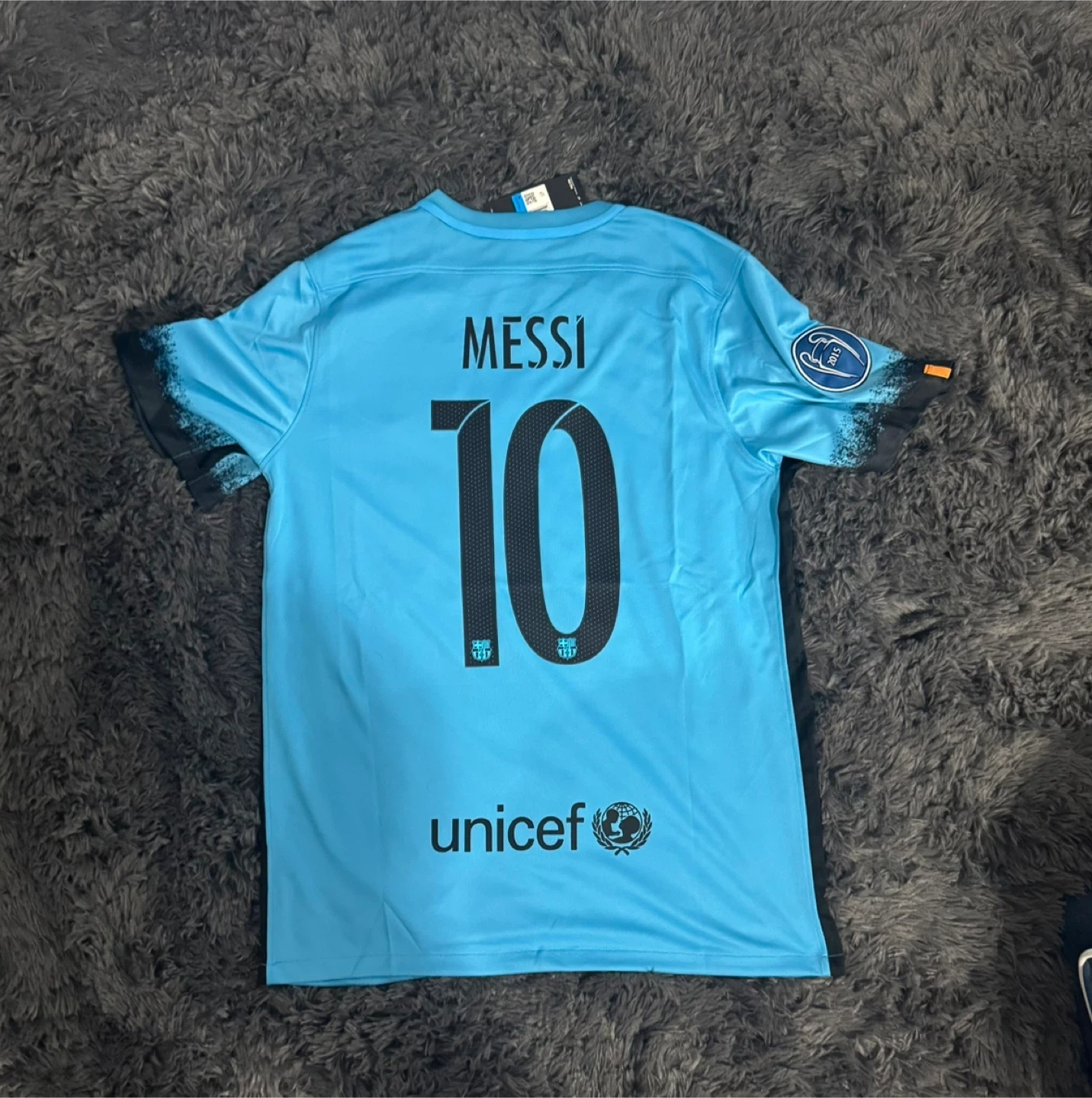 Selling a Nike FC Barcelona jersey with Messi's name and number 10 on it! It's a size medium and in excellent condition. The jersey features the FC Barcelona logo and the UNICEF logo. It also has the Qatar Airways sponsor logo on the front. Perfect for any soccer fan!