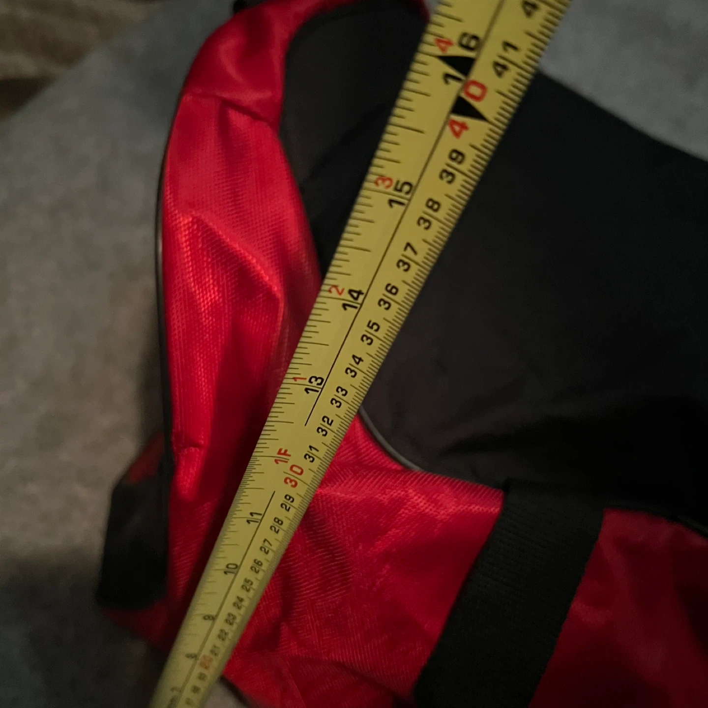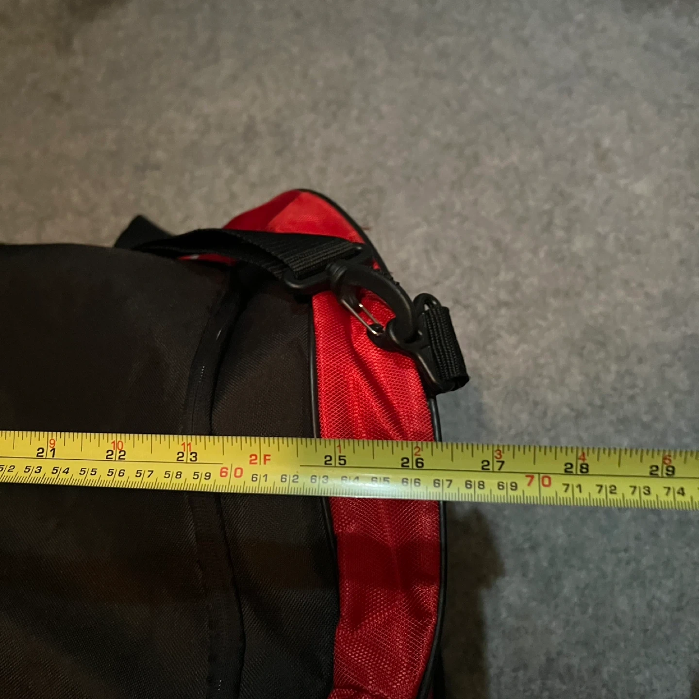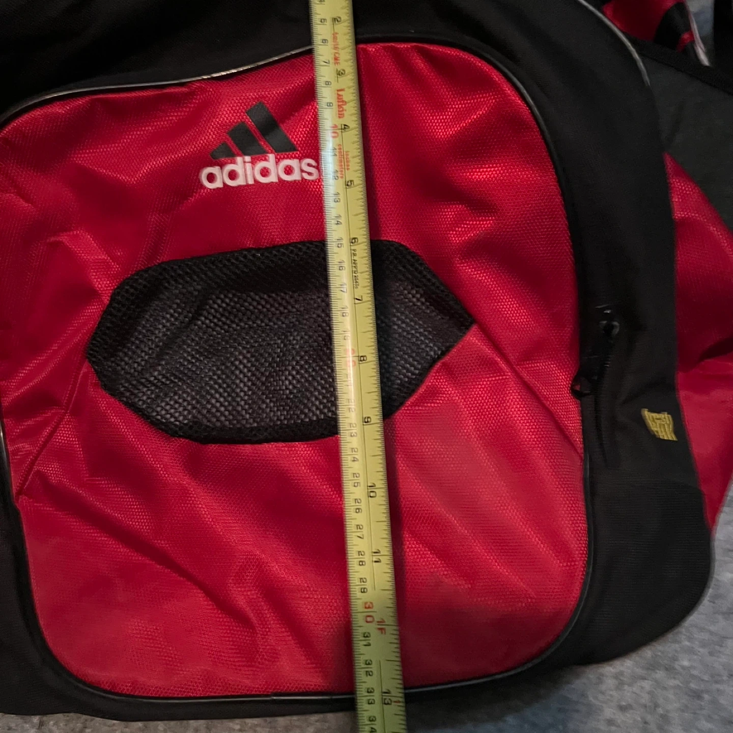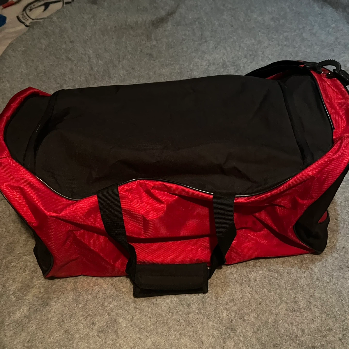 Used not a few times NEXT TO NEW JUMBO BAG. Adidas duffle bag in red and black! It's in great shape and has plenty of room for all your gear. Measures approximately 28 inches long and 12 inches wide. Comes with FREE NIKE SMALLER DUFFLE BAG.