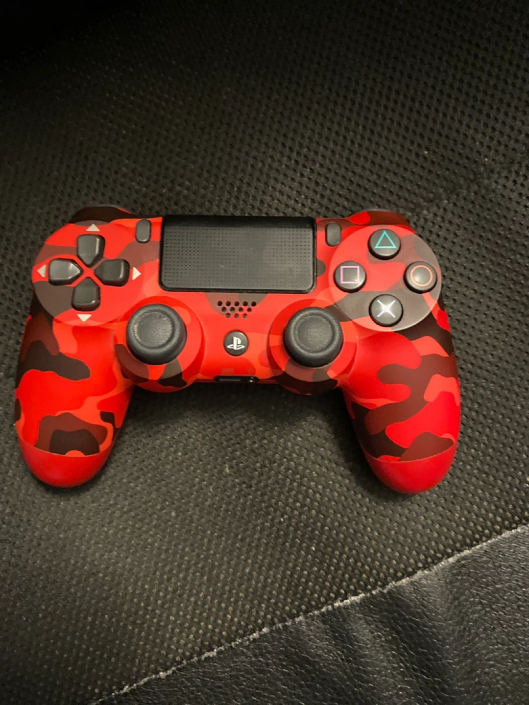 Selling a red camouflage Sony PlayStation 4 (PS4) controller. It's in great shape and ready for a new gamer!