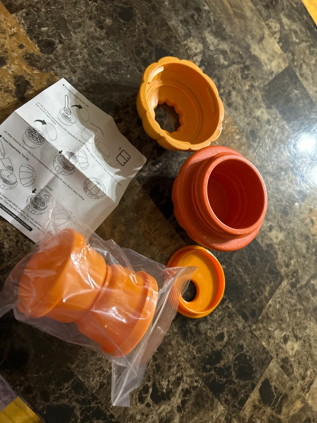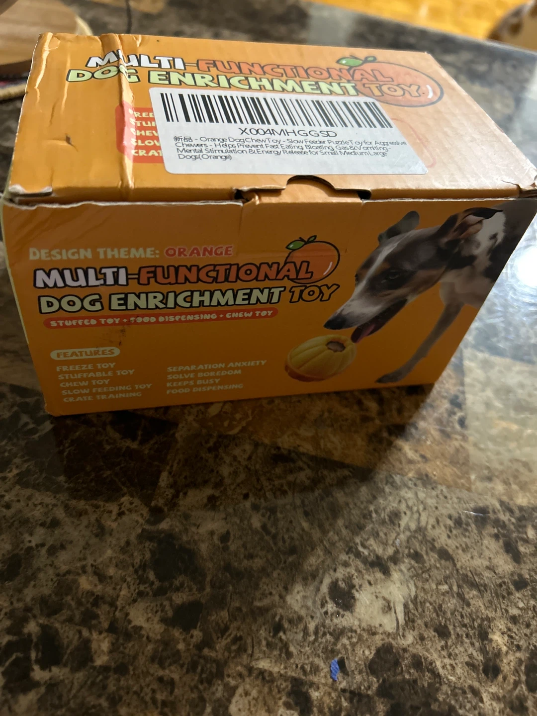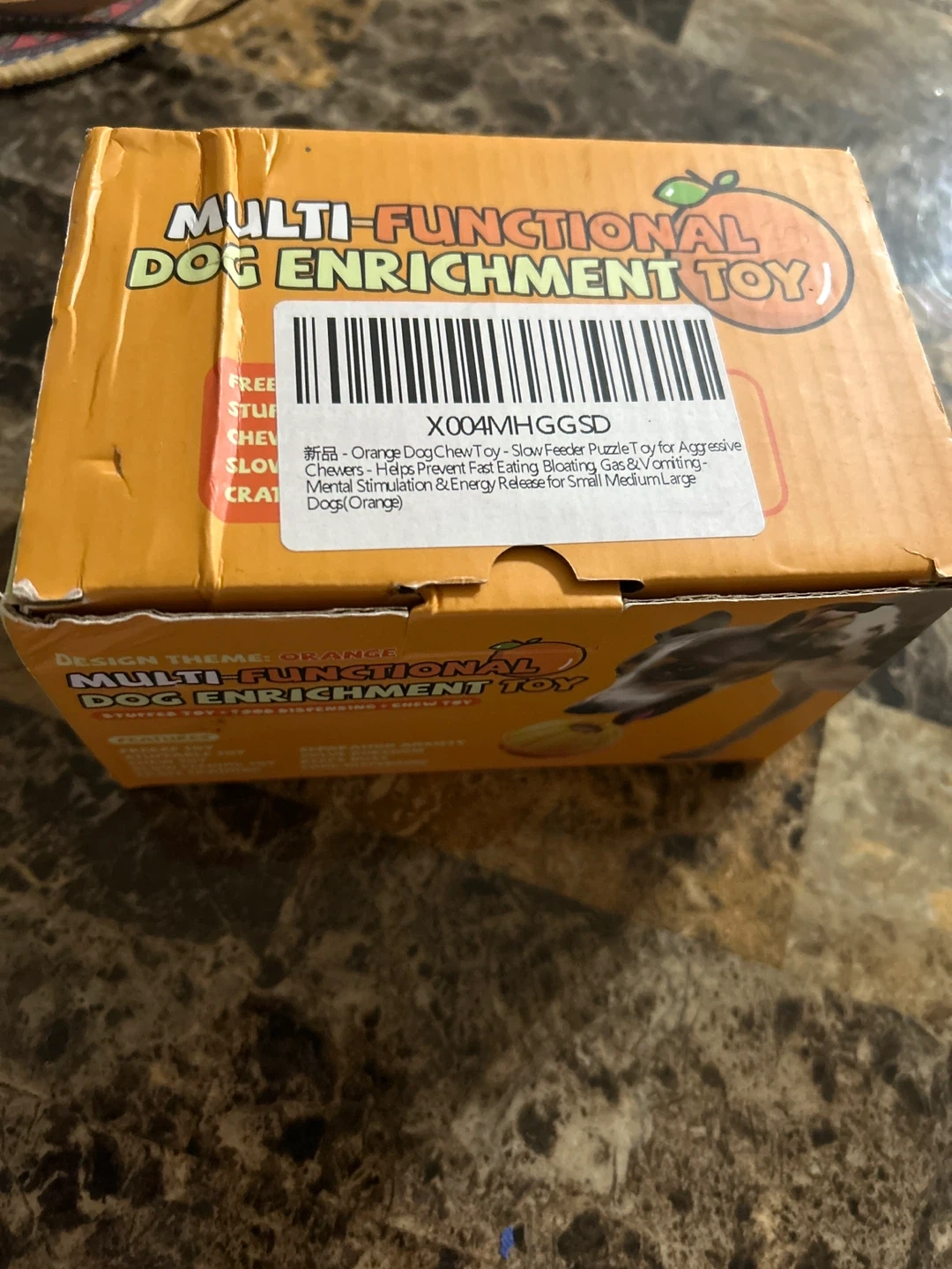 This is a New multi-functional dog enrichment toy! It's designed to be a stuffed toy, food dispensing toy, and a chew toy. It helps with separation anxiety and keeps your dog busy. It also helps with slow feeding and crate training!