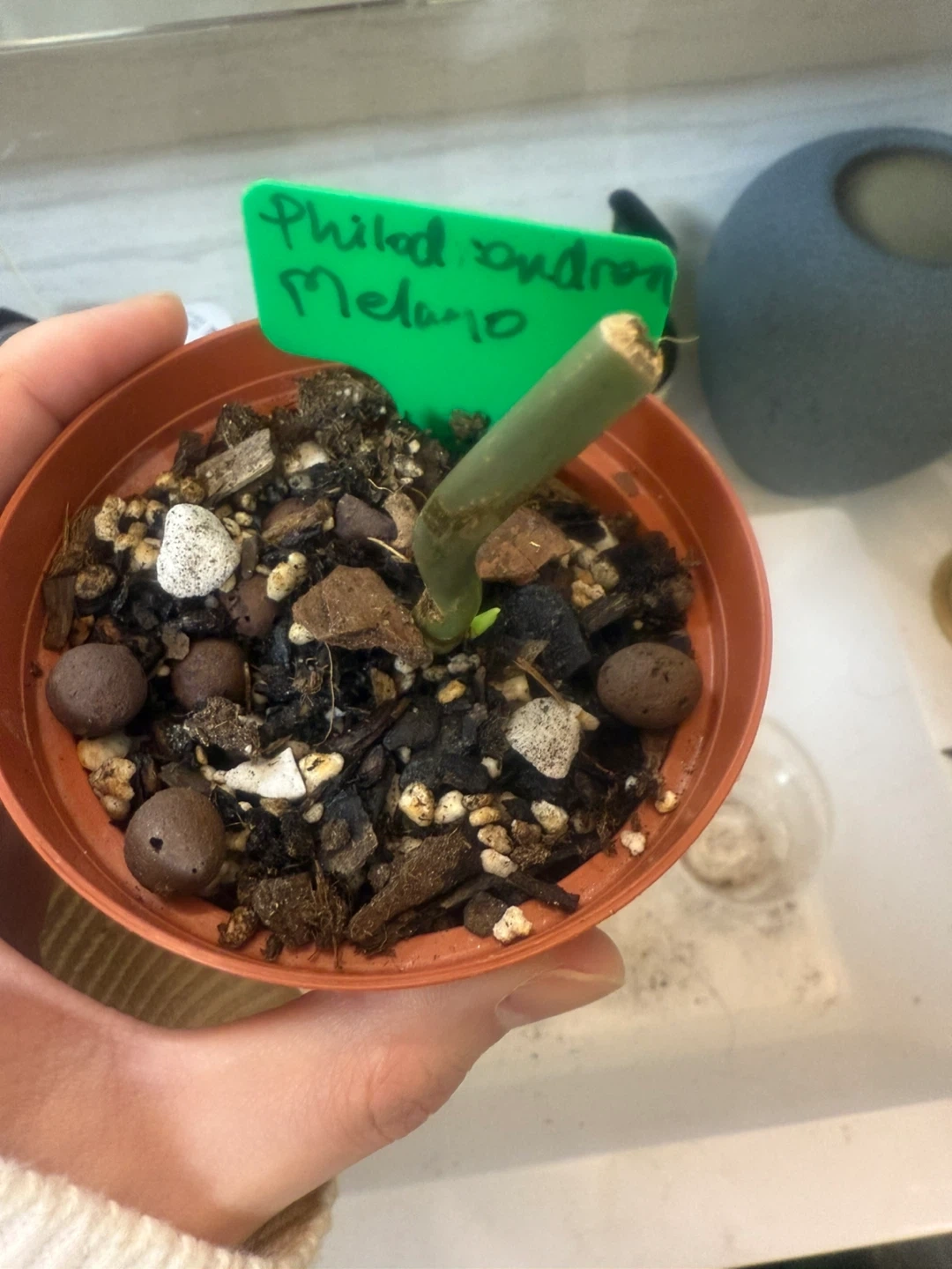 Philodendron melanochrysum rooted node cutting, It's a rare plant known for its velvet texture leaves. it has a new growth already.