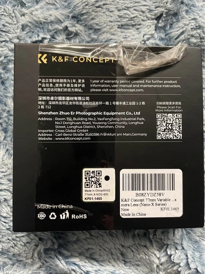 K&F Concept NANO-X Series variable ND filter, 77mm, range ND2–400. Great for photo and video when you want to control light without changing aperture.