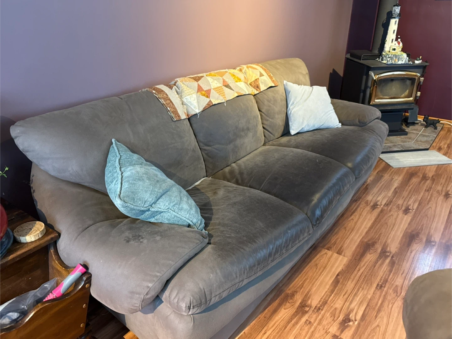 Selling a comfy brown sofa. It's a great piece for any living room and has plenty of space to relax. It has a classic look and feel. Perfect for lounging and watching movies!