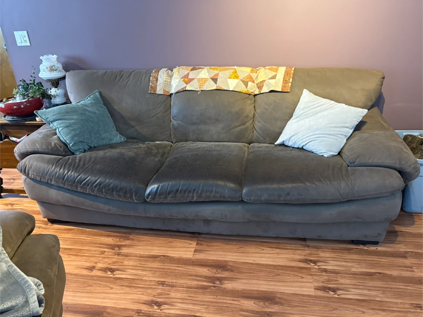Selling a comfy brown sofa. It's a great piece for any living room and has plenty of space to relax. It has a classic look and feel. Perfect for lounging and watching movies!