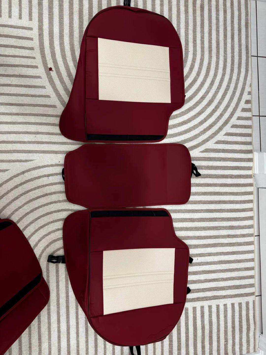 π Universal Leather Car Seat Covers β Full Set (5PCS) β Burgundy & Beige β NEW β $130