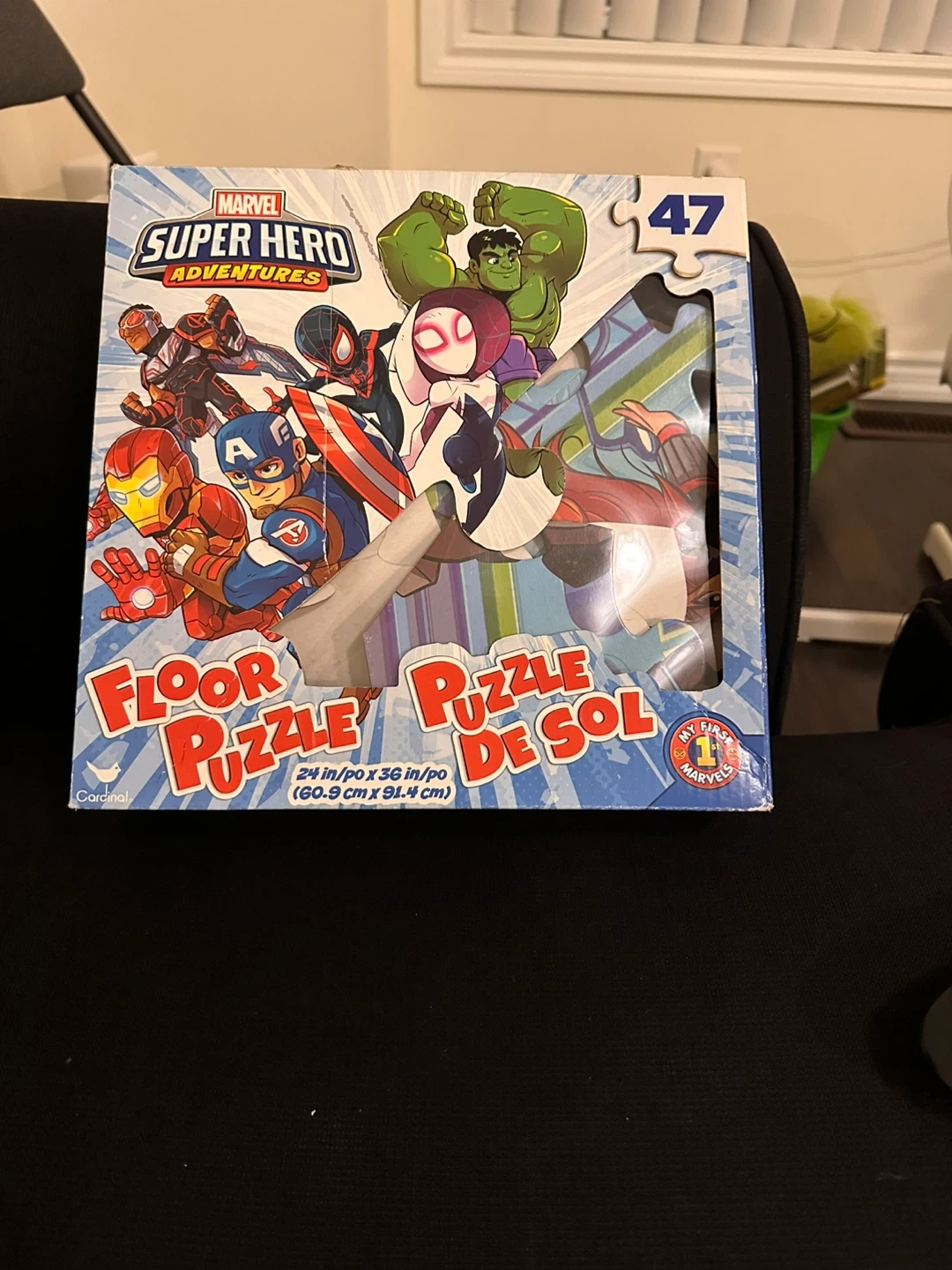 Selling a Marvel Super Hero Adventures Floor Puzzle. It's a 47-piece puzzle that builds a 3-foot puzzle! The puzzle dimensions are 24 in x 36 in (60.9 cm x 91.4 cm).