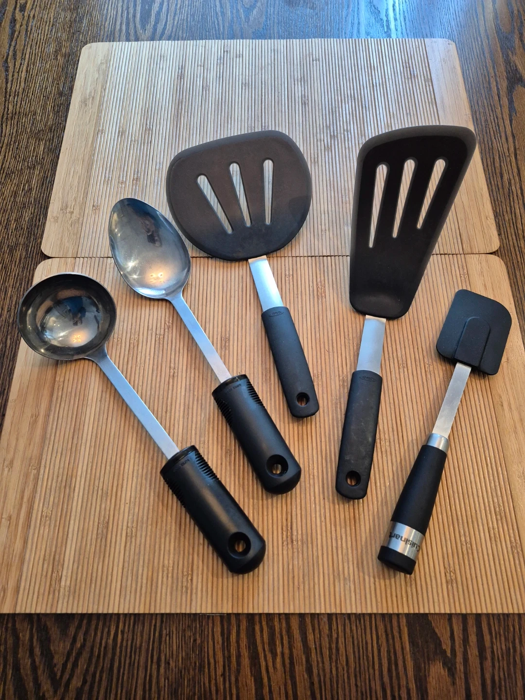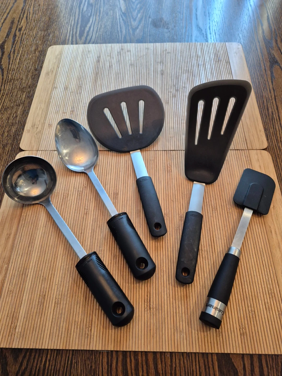 Set of 4 Oxo Good Grips cooking utensils + 1 Cuisinart.