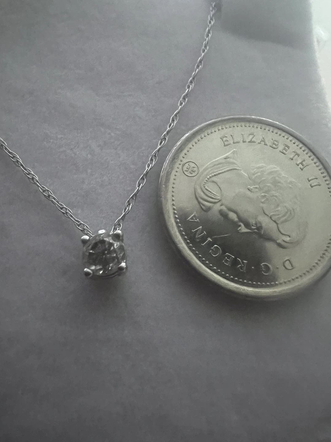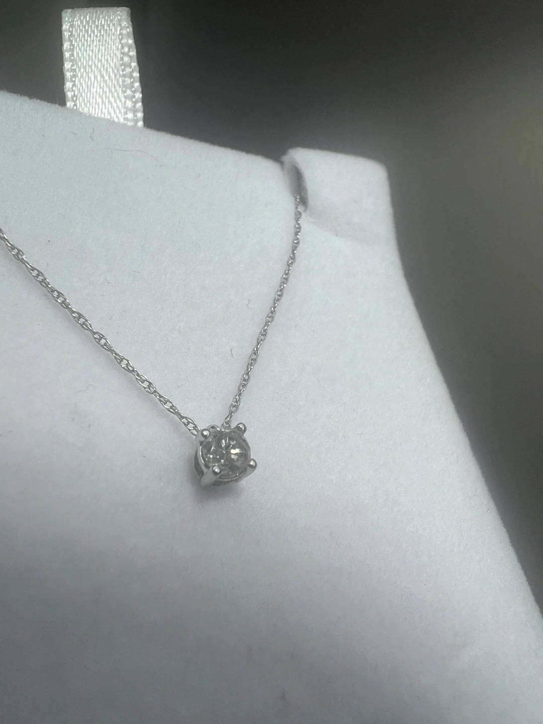Selling a lovely 10K white gold necklace with a solitaire diamond pendant 0.15 carat It's a classic and elegant piece that would make a wonderful addition to any jewelry collection