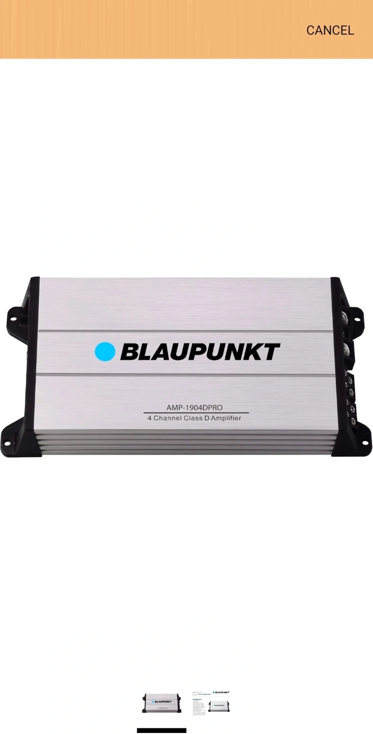 Selling a Blaupunkt AMP1904D 4-Channel D Class Amplifier! It has a max output power of 1800W and features 4 channels. The dimensions are 6.69 x 3.78 x 1.69 inches. Great for enhancing your car audio system
