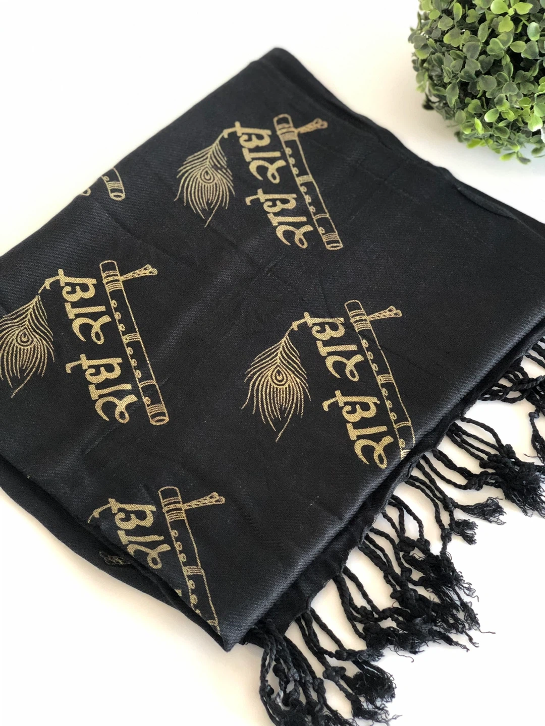 Black Scarf with Radhe Radhe Gold Print