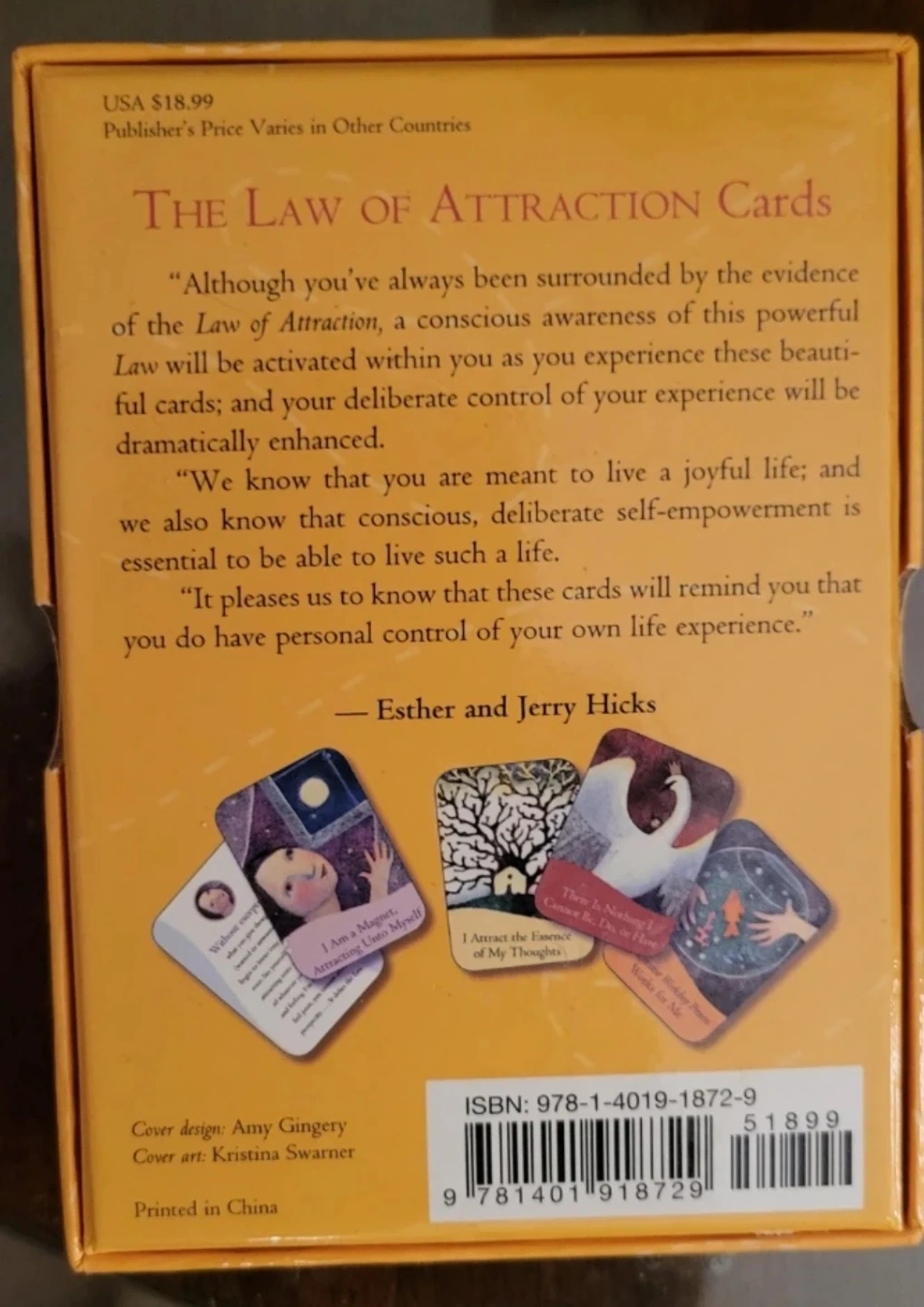 Selling a 60-card deck of The Law of Attraction Cards by Esther and Jerry Hicks (The Teachings of Abraham™). This deck is designed to help you activate the Law of Attraction in your life through beautiful and meaningful cards. Perfect for anyone interested in self-improvement and personal growth!
