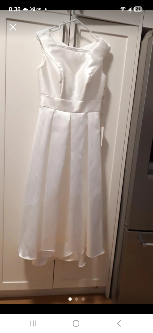 Selling an ivory dress in US size 6, UK size 10, or EU size 36. The bust measures 34.5 inches and the waist is 27.5 inches. It's a beautiful dress!