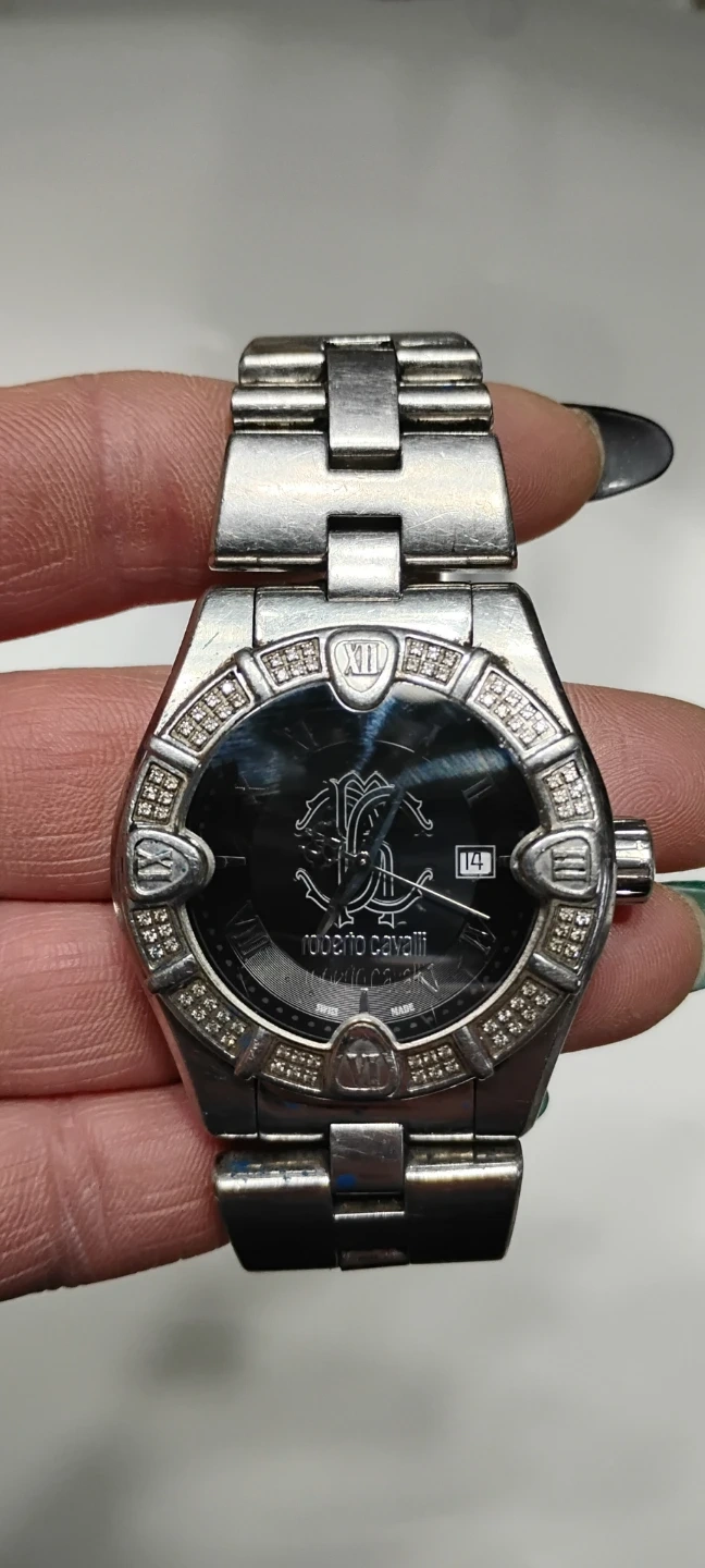 Selling a Roberto Cavalli watch. It's a stylish timepiece with a unique design and diamond accents. It is water-resistant up to 50m and has sapphire crystals surrounding the face
