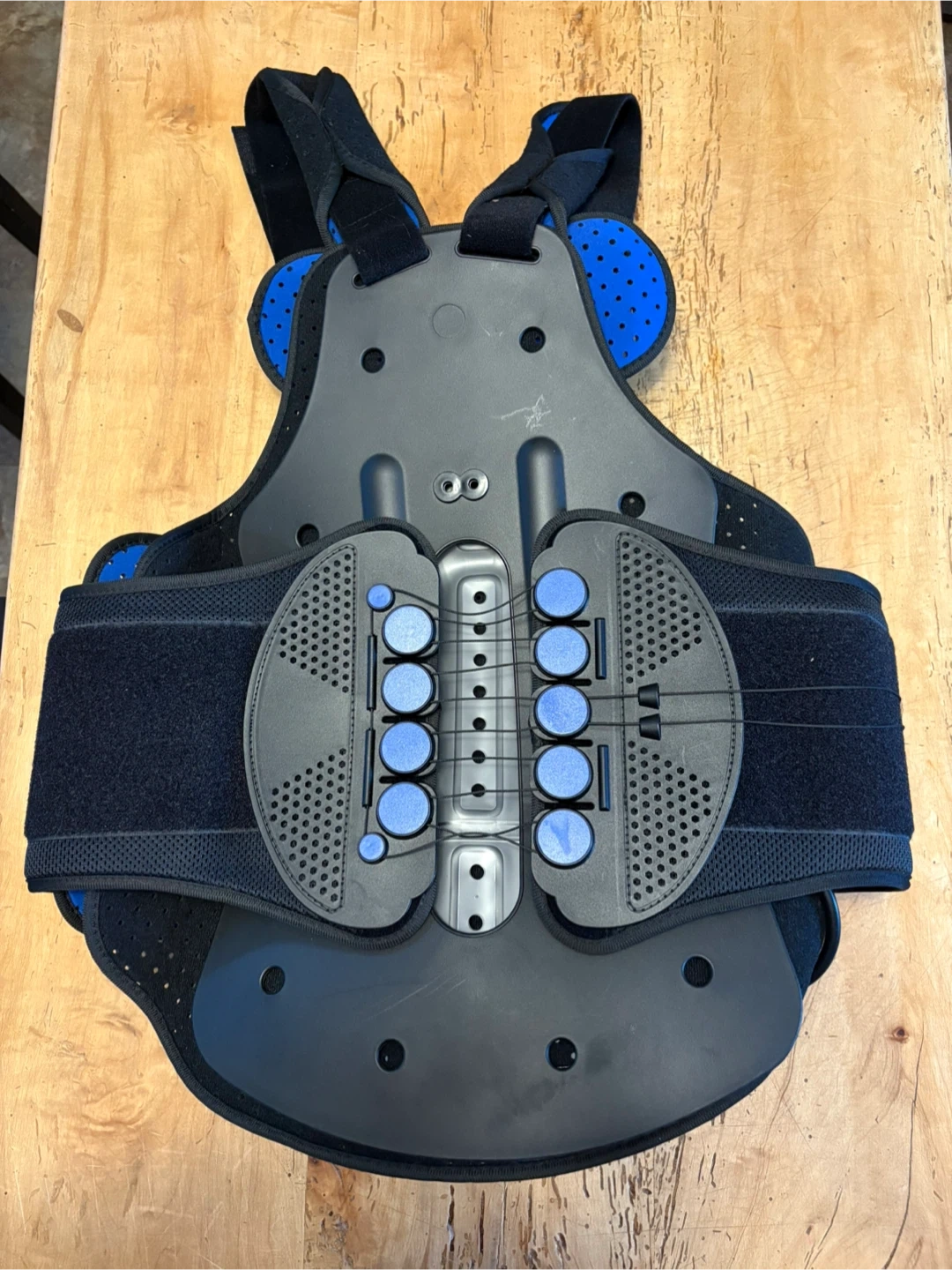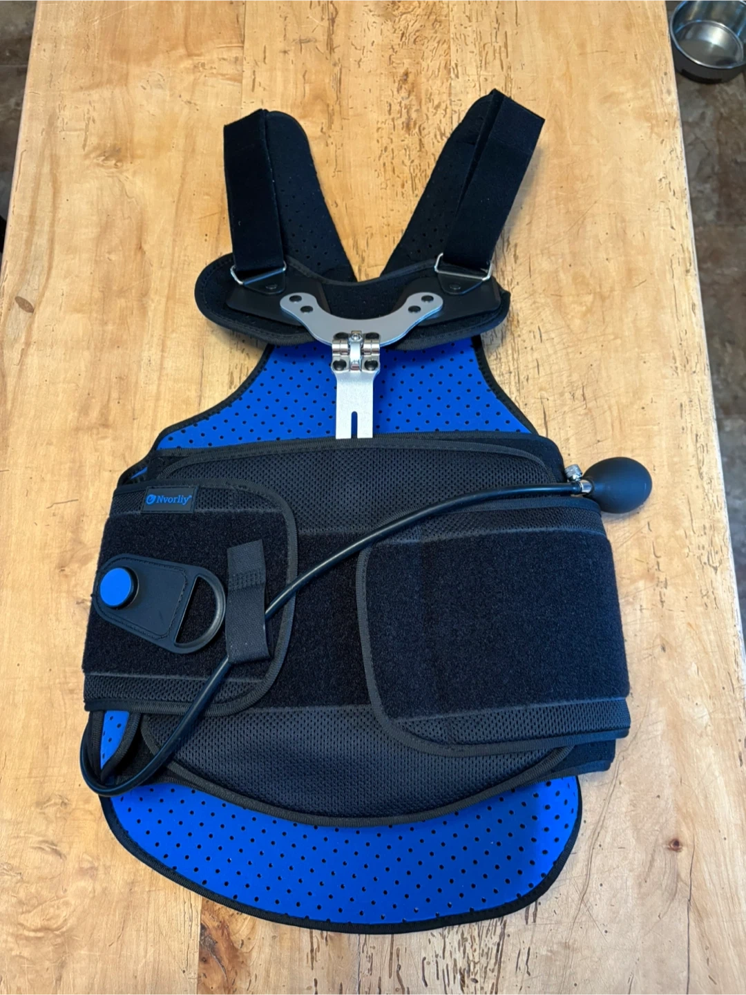 Selling a Nvorliy TLSO Full Back Brace in medium size. It's designed for back pain relief and provides inflatable support. This brace is suitable for various conditions, including scoliosis and osteoporosis.