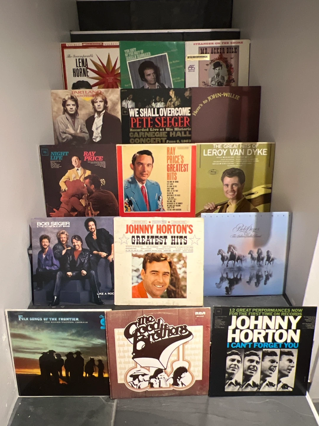 Selling a collection of vintage vinyl records. Some of the artists include Lena Horne, Merle Haggard, Mr. Acker Bilk, Partland Brothers, Pete Seeger, and Johnny Horton. Great for collectors or anyone looking to expand their record collection!