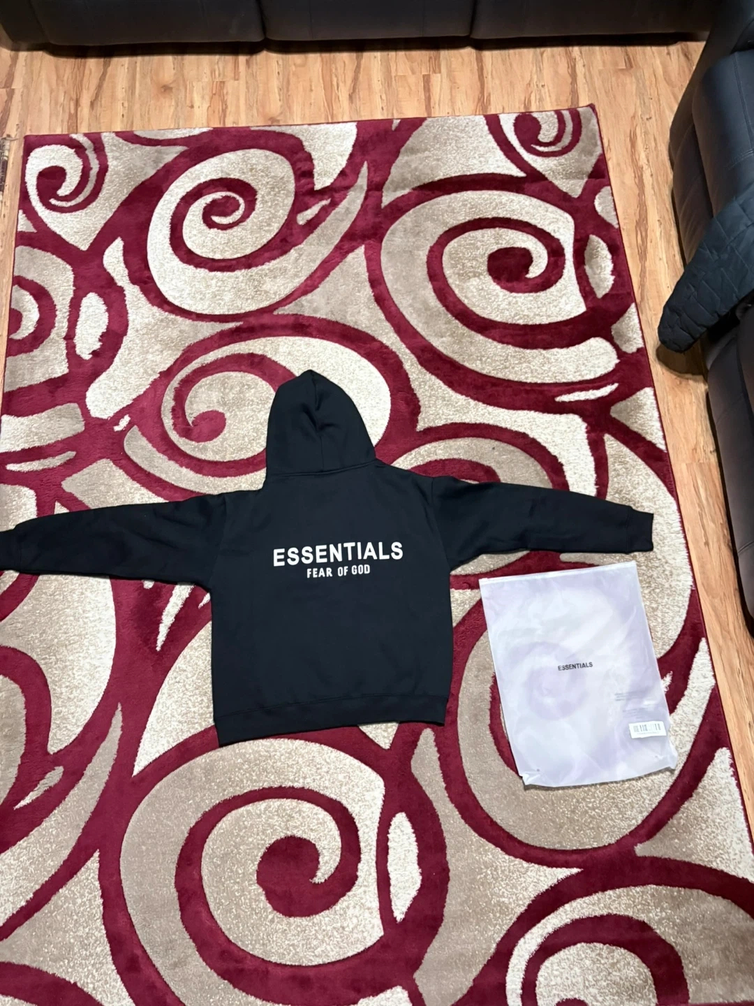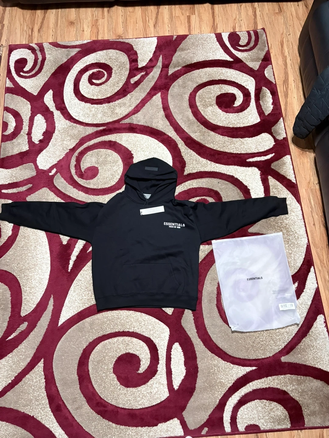I'm selling a black Essentials Fear of God hoodie. It's in great condition and comes with the original packaging! Size small mens