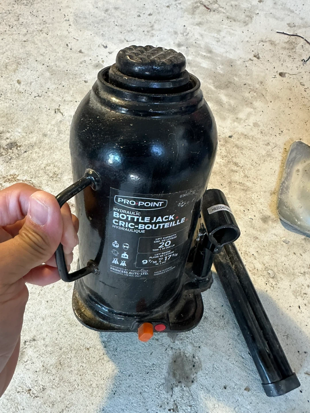 Selling a Pro Point hydraulic bottle jack with a lift capacity of 20 tons (40,000 lbs). The lift range is 9 7/16" to 17 5/8". Great for auto repairs and maintenance!