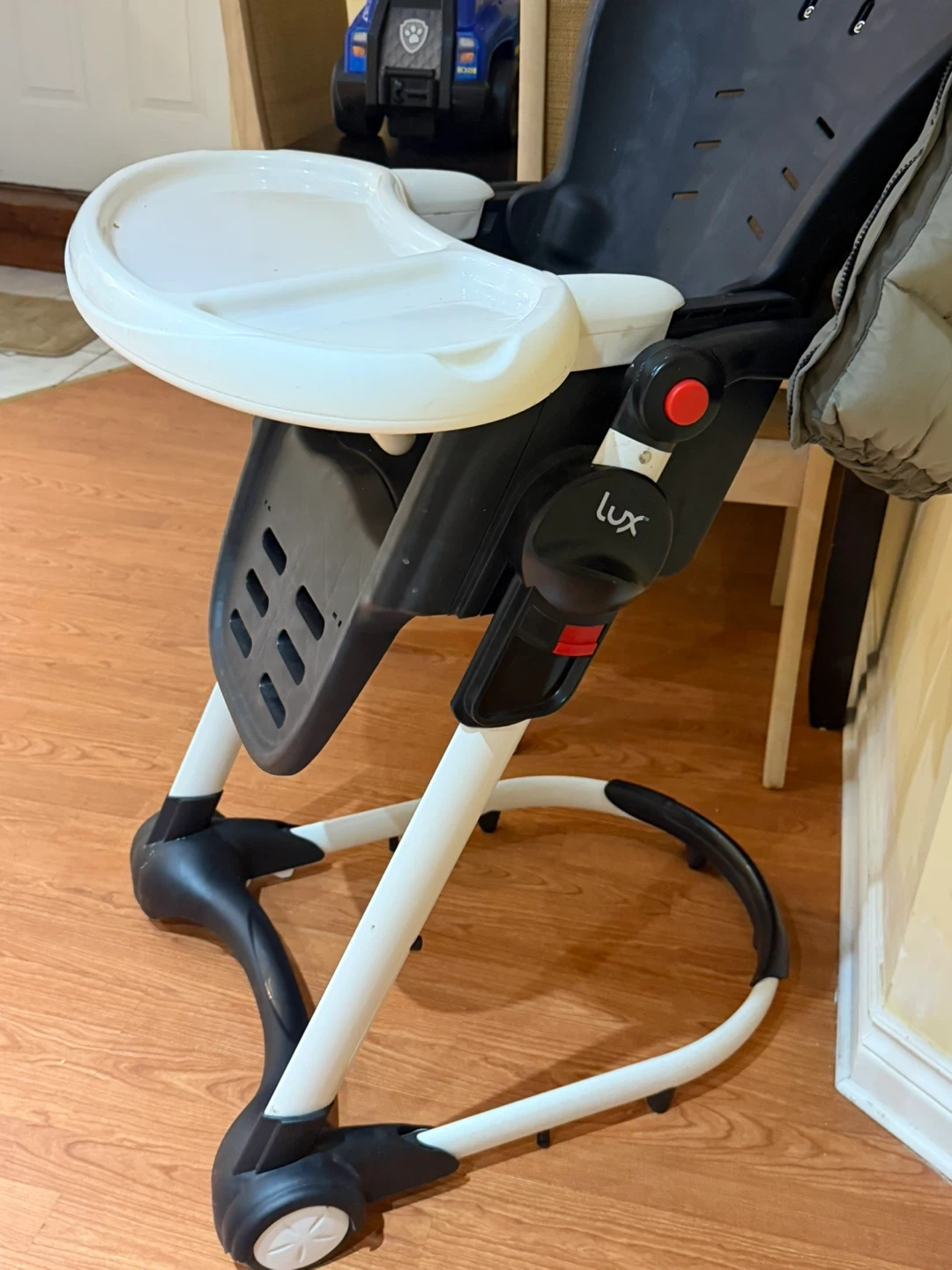All Selling a Lux high chair in black and white. It's in good condition and ready for a new home! Perfect for meal times with your little one.