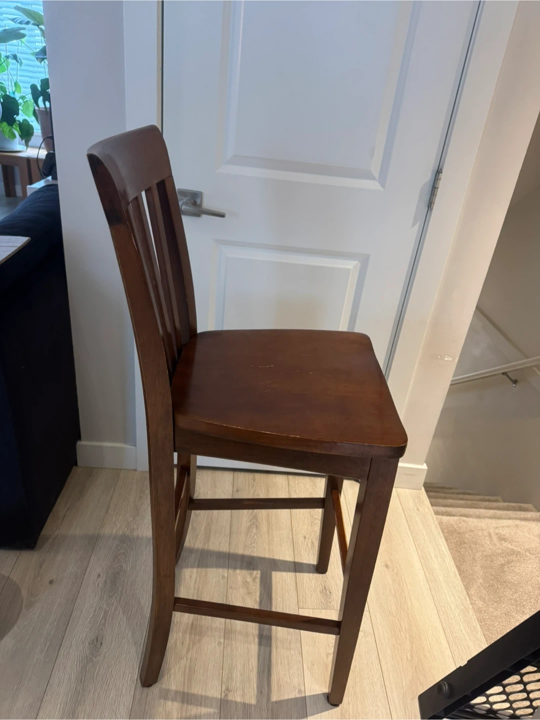 Selling a set of three dark wood bar stools. They're in great condition and very sturdy.