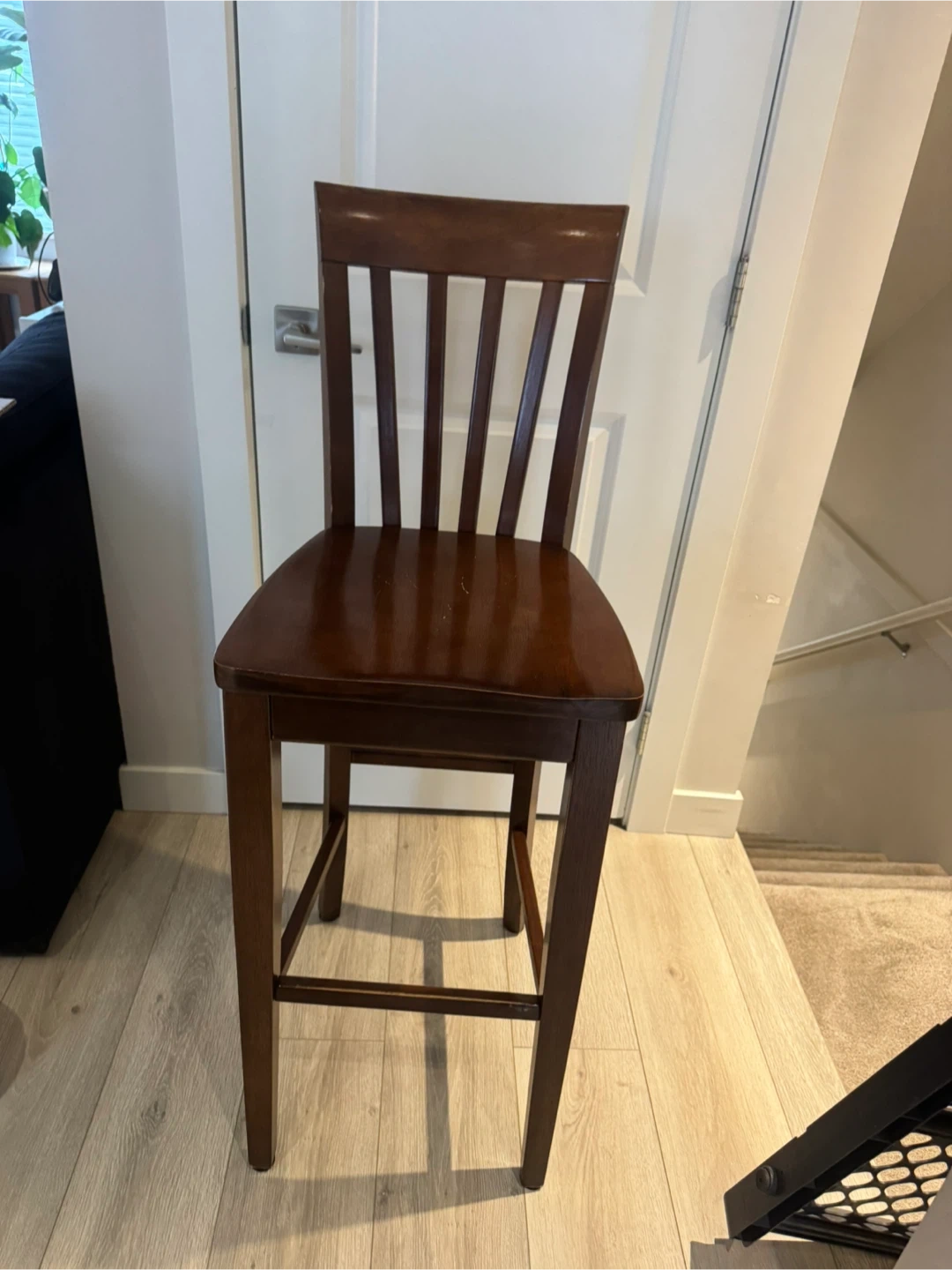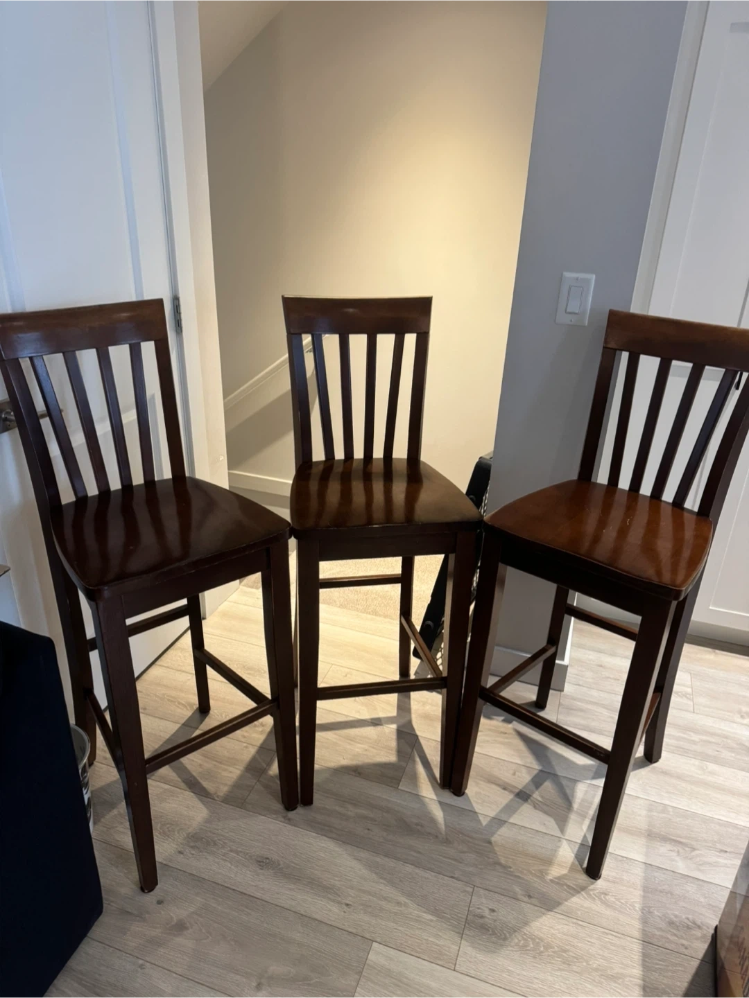 Selling a set of three dark wood bar stools. They're in great condition and very sturdy.