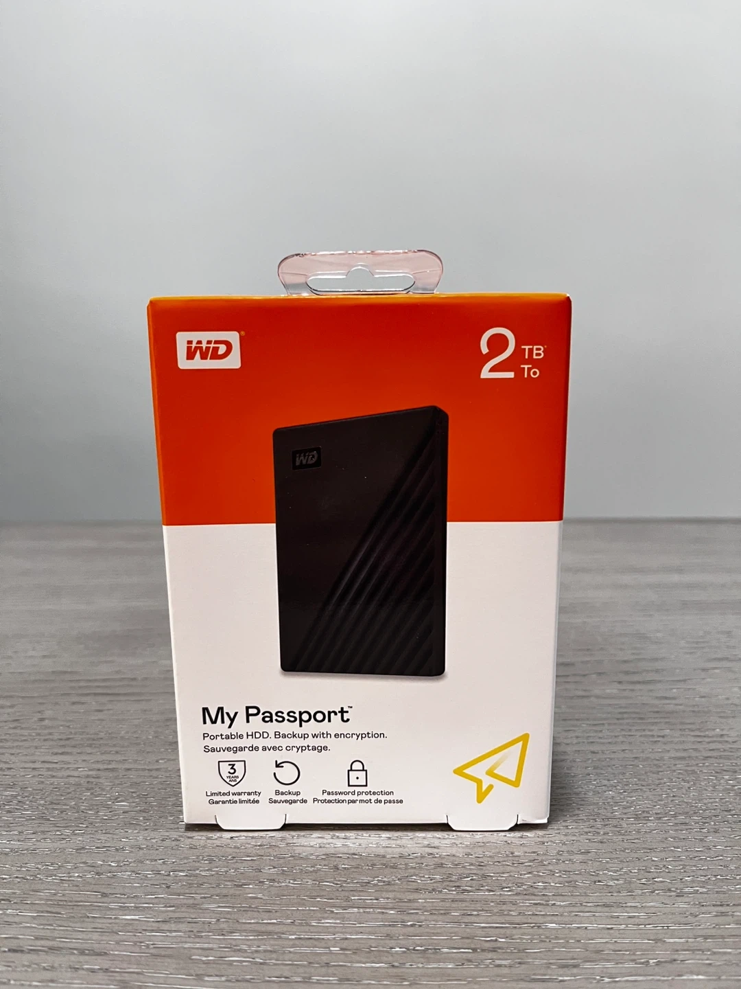 Brand new WD My Passport 2TB portable external hard drive in its original box! It works with devices capable of supporting the newest version of Chrome OS and has been subjected to Google's compatibility standards.