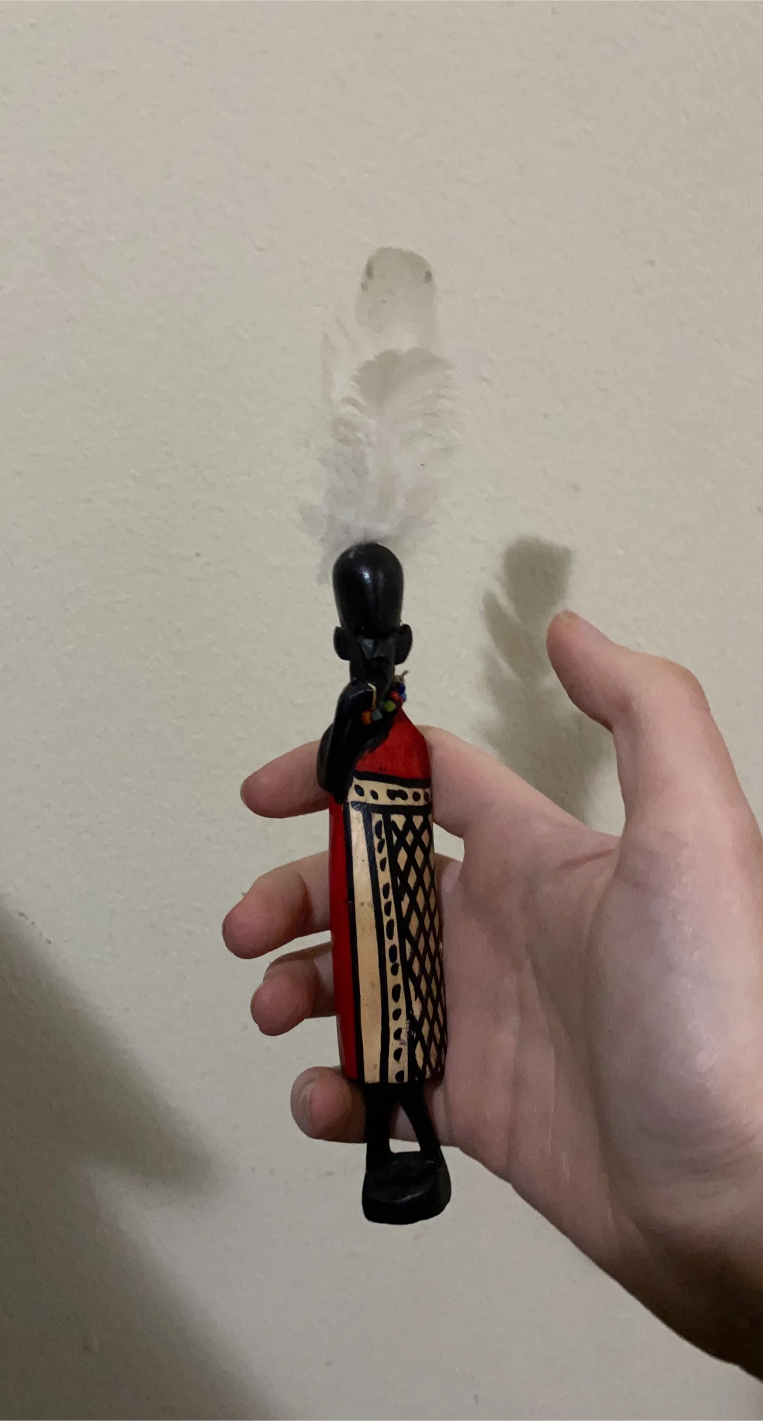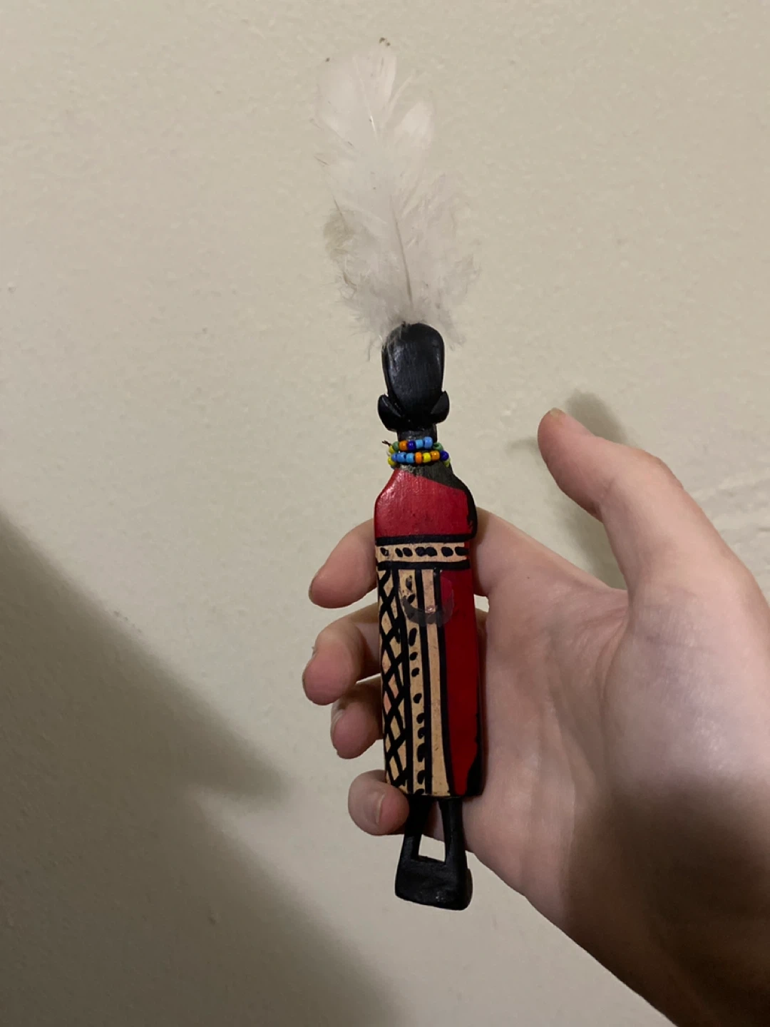 African Wooden Figurine with Feather