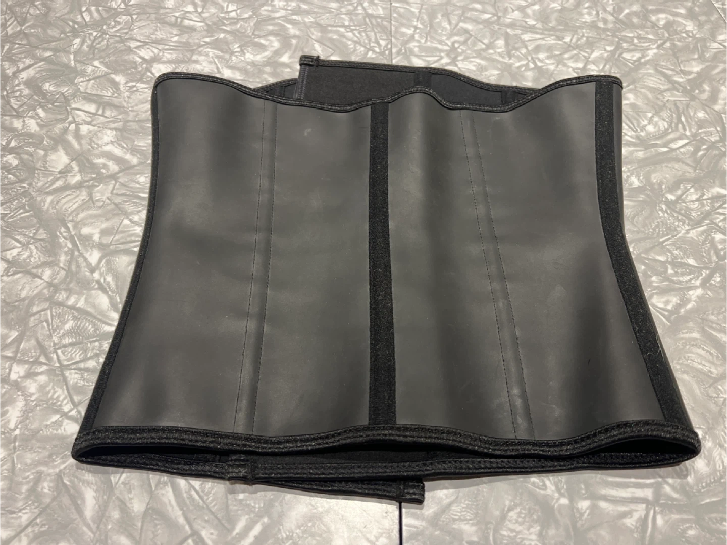 I'm selling a black waist trainer. It is in good condition and is made of a flexible material. It has hook-and-eye closures for adjustable sizing, so you can get the perfect fit!