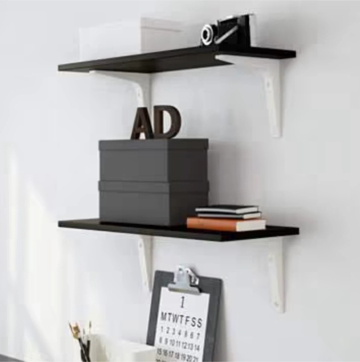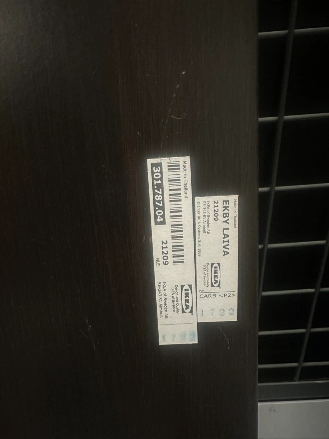 Selling two IKEA EKBY LAIVA shelves in dark brown. They have some light scratches, but are otherwise in good condition. Great for adding some extra storage space!