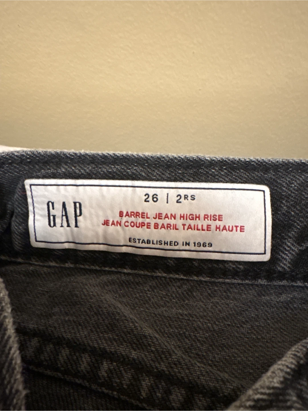 Selling a pair of Gap Barrel Jean High Rise in size 26. They are a stylish and comfortable choice for everyday wear. The jeans are in great condition and ready for a new owner!