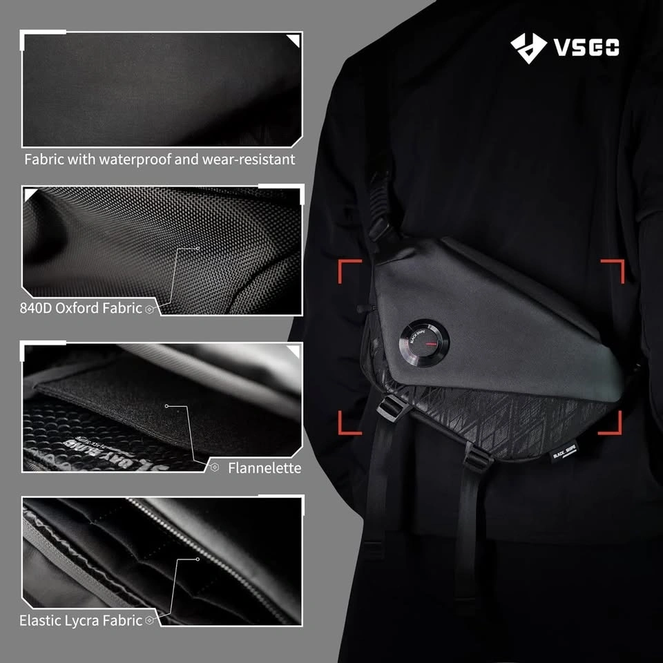 [One Bag for Multiple Uses ] VSGO Camera Sling Bag 4L is suitable for different scenes: Mirrorless camera carry/everyday essential/tech organizers. The sharp line cutting and rich functional details highlight its flexibility and accompanies users to calmly deal with different scenarios.