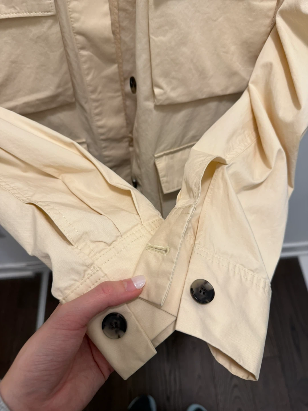 Selling a COS jacket in a lovely beige colour. It's a size 4. The material is 100% cotton
