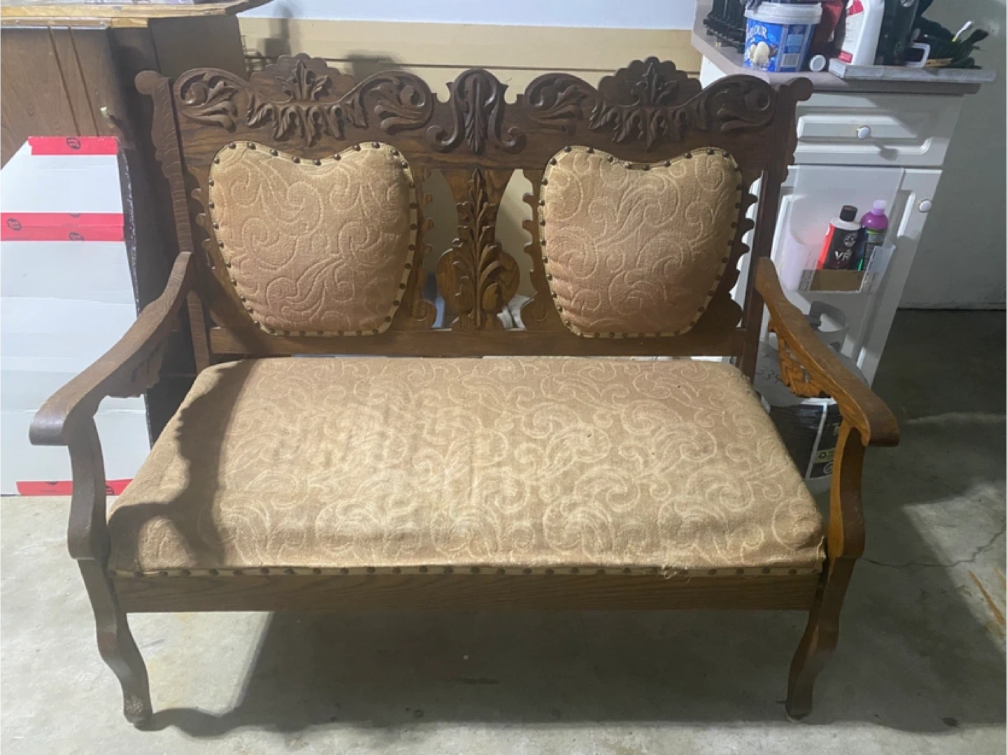 Light Beige Loveseat and Ottoman